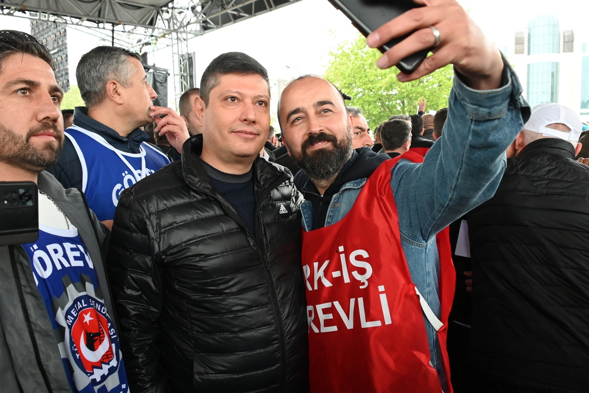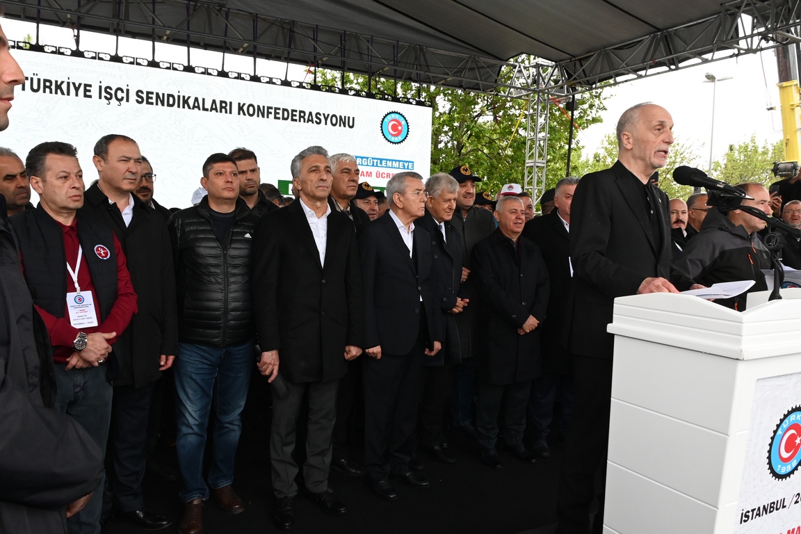 Soğuk ve yağışlı hava şartlarına rağmen büyük bir coşku içerisinde gerçekleşen 1 Mayıs kutlamalarında kürsüye gelen TÜRK-İŞ Genel Başkanı Ergün Atalay, yaptığı konuşmada çalışma hayatının gündeminde yer alan sorunlara değindi. Atalay’ın konuşmasının ardından CHP Genel Başkanı Özgür Özel de miting alanındaki işçileri selamladı.