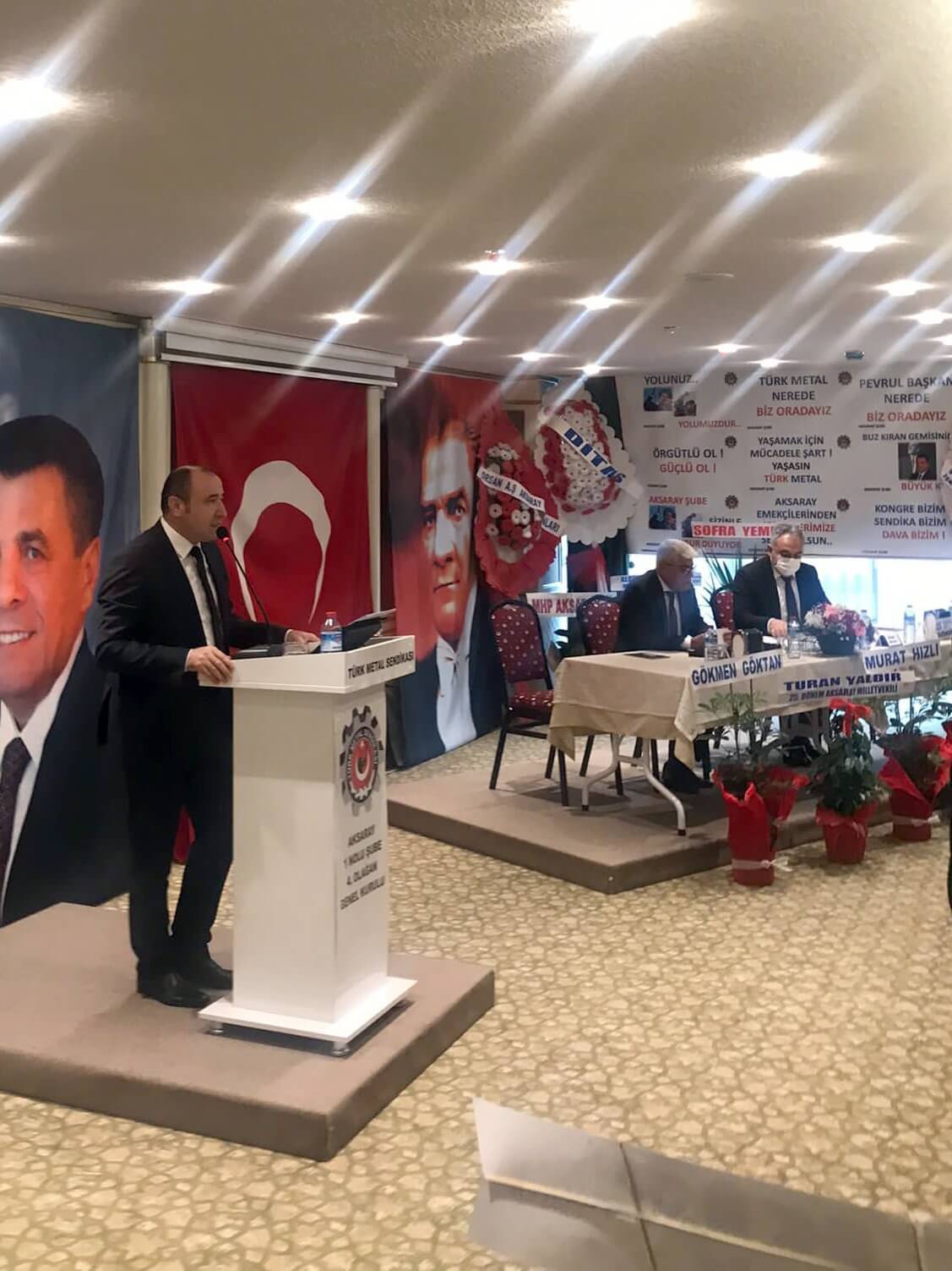 Genel Başkan Yardımcımız Halil Faki Erdal’ın ardından ise kürsüye çıkan Mercedes-Benz Türk Aksaray Kamyon Fabrikası İnsan Kaynakları Müdürü Burçak Yetkin ile CHP Aksaray İl Başkanı Ali Abbas Ertürk genel kurul delegelerine başarı dileklerini sundukları bir selamlama konuşması gerçekleştirdi.