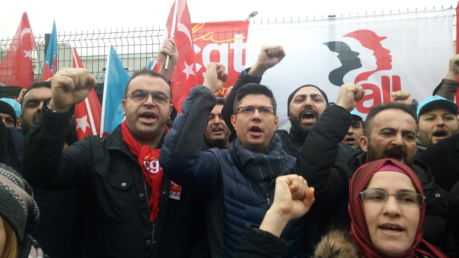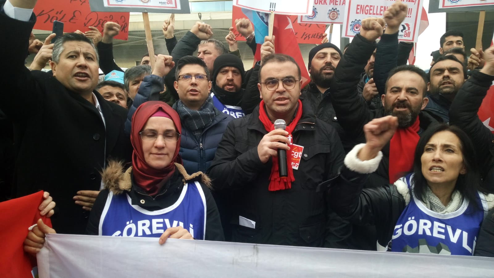 Genel Başkan Yardımcımız Altundağ konuşmasına Akwel işverenine seslenerek devam ederken şunları söyledi: “Bugün şubede işten atılan kardeşimizle bir araya geldim. Kendisinin nasıl işten atıldığını ve kendisine neler söylendiğini dinledim. İşveren vekilleri, kendilerini çağırıyorlar ve diyorlar ki senin performansın çok düşük olduğu için işten çıkarılacaksın. Arkadaşa sordum peki bunun göstergesi nedir diye… Arkadaşın bordrosuna baktım tüm performans primlerini tam almış. Madem performansı düşüktü, tüm primlerini niye ödediniz. İnsanda biraz vicdan olur, insaf olur. Allah aşkına dalgamı geçiyorsunuz, performans olarak işyerinin en iyi adamının işine son veriyorsunuz. Sendikal sebeplerden dolayı arkadaşımızın işten atıldığı açıktır. Biz bugün avukat arkadaşlarımızın aracılığıyla Türkiye Cumhuriyeti’nin savcılarına müracaatımızı yaptık. Sendikalı olmak anayasal bir haktır. Bu hakka karşı gelen tüm işveren ve vekilleri bugün savcılığa suç duyurusunda bulunarak şikâyet ettik. Ayrıca işten atılan arkadaşlarımız için iş mahkemesine, işe iade ve kötü niyet tazminatı davalarının bugünden itibaren açacağız. Her süreçte arkadaşlarımızın yanında olacağız.”