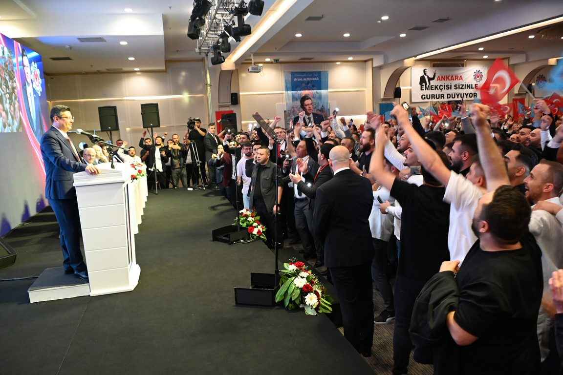 Genel Başkanımız Altundağ, Sendikamız Türk Metal’in, bugün itibarıyla 419 işyerinde örgütlü olduğunu belirterek sözlerine devam etti. En eskisinden en yenisine, her bir üyemizin sendikamızın gücünün kaynağı ve emek mücadelemizin kahramanı olduğunu söyleyen Genel Başkanımız, “Bizim işyerlerinde, sözleşme masalarında, caddelerde, sokaklarda, alanlarda verdiğimiz hak mücadelesinde, bu kalelerimizden başka sığınacak yuvamız, üyelerimizden başka tutacak dalımız yoktur. Ankara Şubemiz bu kalelerimizin en önemlilerinden, en güçlülerinden biridir. Bu şubemizde örgütlü sizler de hak mücadelemizin, ekmek mücadelemizin en önemli neferlerisiniz. Burada sizlerle olmaktan onur duyuyorum” dedi.