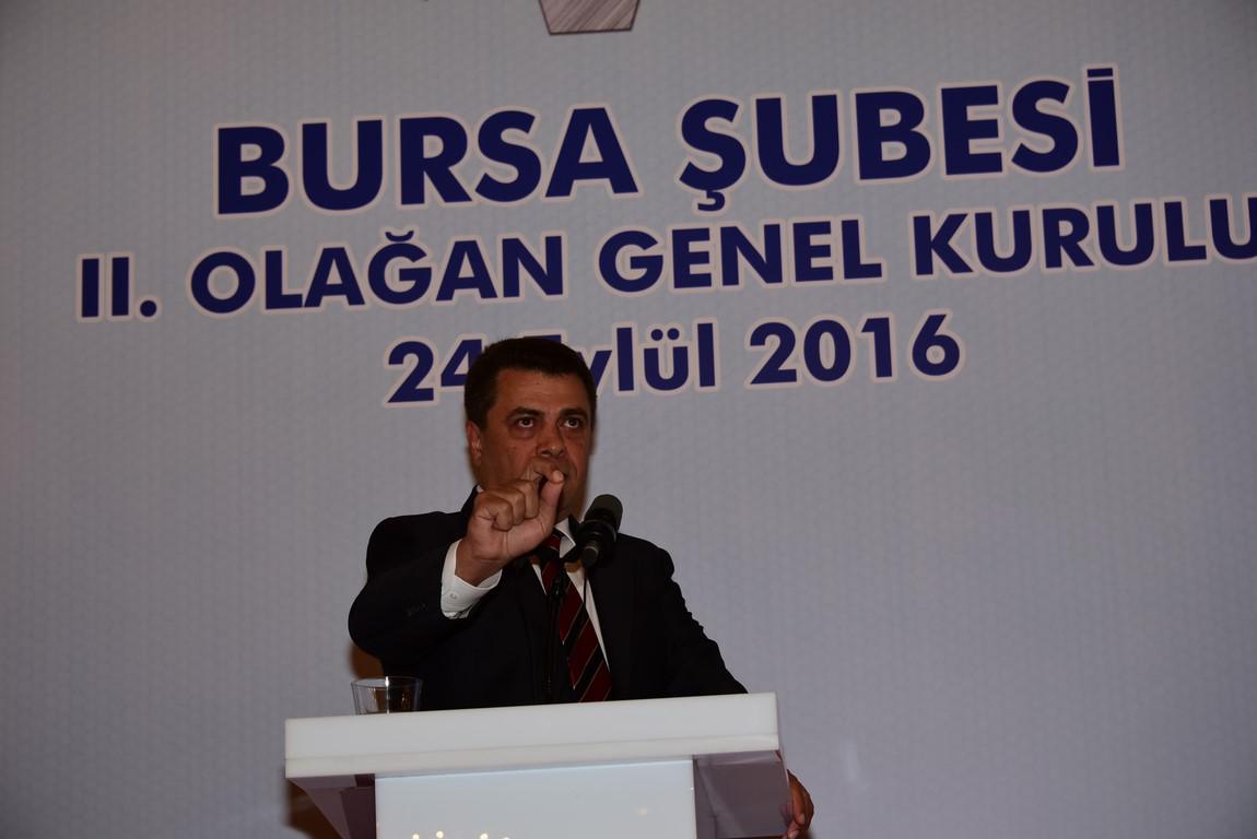 Sözleşmeyi, bu üç şart üzerine inşa edeceğiz. Bu üç şartı hayata geçirdiğimizde imzalayacağımız sözleşme iyi bir sözleşme olur mu? Olur mu? Olur. Hem de çok iyi bir sözleşme olur. Çığır açan, tarih yazan bir sözleşme olur. Onun için son kez soruyorum, Bursa Şubemizin Genel Kurul delegeleri, Kalkın ayağa… Kalkın… Kalkın ve haykırın… Öyle bir haykırın ki, dost düşman herkes duysun. 2017 sözleşmesinin bu şartlar çerçevesinde yürütülmesini kabul ediyor musunuz? Onaylıyor musunuz? Destekliyor musunuz? Bunun için mücadele edecek misiniz? Gemileri yakacak mısınız? Benimle yola çıkacak mısınız? Çıkacak mısınız?” dedi.