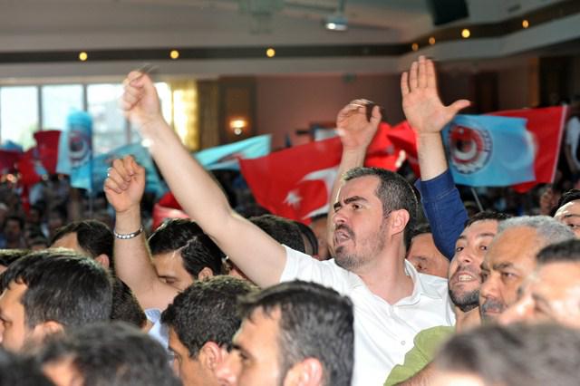 Toplantıya metal işçilerinin sloganları damgasını vurdu. Başkan ilerle, işçiler seninle… Başkan seninle greve de gideriz… Bursa ovası, Türk Metal’in yuvası… Gibi sloganlar hep bir ağızdan ve büyük bir coşku ile söylendi.