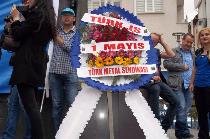 “Bugün tüm dünyada emekçiler, emeğin uğradığı haksızlığa direniyor. Ülkemizde işçiler, ekmek, barış, özgürlük diyor. Özgürlük, adalet temeline dayalı toplumsal barış diyor. Bugün Türkiye’nin her yerindeyiz, Ankara Tandoğan’da, İzmir Gündoğdu’da, Diyarbakır Dağkapı’da, Eskişehir Sıhhıye’de, Adana İstasyon’da, Bursa Kent Meydanındayız.