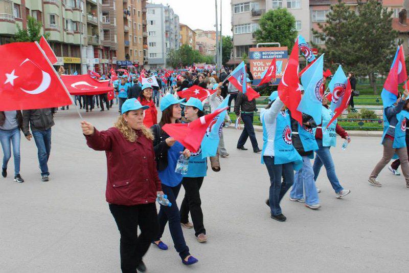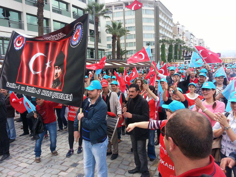 İzmir’de, Eskişehir’de, Bolu’da, Bursa’da, Balıkesir’de, İskenderun’da, Aksaray’da ve diğer tüm şubelerimizin bulunduğu kentlerde Türk Metal yoğun bir katılımla meydanları doldurarak 1 Mayıs’ı coşku ve heyecan içinde, birlik ve beraberlikle kutladı.