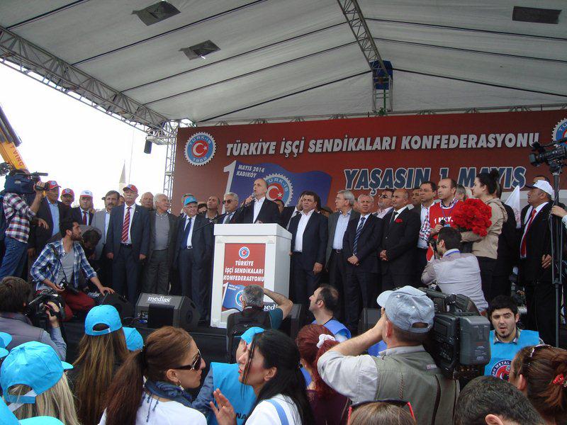 Genel başkanımız Pevrul Kavlak TÜRK-İŞ Yönetimi ile birlikte Taksim anıtına ve Kazancı yokuşuna bırakılan çelenk bırakma töreninden sonra geldiği Kadıköy Meydanında üyelerimiz tarafından sevgiyle ve coşkuyla karşılandı. TÜRK-İŞ Genel Sekreteri olarak 1 Mayıs Emek ve Dayanışma günü açış konuşmasını yaptı. Konuşmasının ardından TÜRK-İŞ Genel Başkanı Ergün Atalay bir konuşma yaptı. Genel Başkan konuşmasında kısaca şunlara değindi;