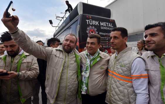 Genel Başkanımızın konuşması sırasında Valeo çalışanı üyelerimiz sık sık “Türk Metal’de Nerede Biz Oradayız, Sendika Eğilme İşçilerin Seninle, Valeo Seninle Gurur Duyuyor” sloganları atarken, konuşmasının ardından Genel Başkanımıza yoğun sevgi gösterisinde bulunarak bol bol fotoğraf çekindiler.