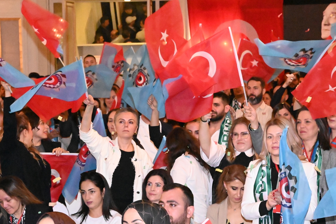 Değerli dostlarım, biz göreve geldiğimiz günden bu yana var gücümüzle çalışıyoruz. Bir dakika bile durmadan, soluklanmadan, üyelerimize insan onuruna yakışır bir yaşam sağlamak için onların çoluk çocuğunun güvencesi olabilmek için her bir üyemizin “İyi ki sendikam var” diyebilmesi için gecemizi gündüze katıyoruz. Benim her konuşmamda altını ısrarla çizdiğim bir şey var. Biz, örgütlenmek zorundayız. Peki neden? Sadece rakamlar, istatistikler için mi bu kadar mücadele veriyoruz? Tabii ki hayır. Biz, örgütlenmeyi emekçilerin insanca yaşayabilmesi için istiyoruz. Çünkü bu ülkede hala asgari ücrete mahkum edilen binlerce metal işçisi var. Sosyal haklardan yoksun, güvencesiz, esnek çalıştırılan on binlerce insan var. Geçtiğimiz günlerde Dilovası’nda olduğu gibi alınmayan önlemler nedeniyle iş cinayetlerinde hayatını kaybeden canlarımız var. İşte bu adaletsizliğe karşı da biz varız. Bu tabloyu değiştirmek için biz varız. Türkiye’nin en büyük sendikası olarak bize düşen en önemli sorumluluk budur. Ve şükür ki karşımıza çıkan her zorluğa, önümüze konan türlü engellemelere rağmen işçiyi görmezden gelen, emeği değersizleştiren, sendikal hakları yok sayan tüm anlayışlara rağmen bugüne kadar bu mücadeleyi başarıyla sürdürdük. Dimdik ayakta durduk. Örgütlendik, örgütlendikçe güçlendik. Birlikte omuz omuza tüm engelleri aştık. Sizden aldığımız güçle birçok işyerine sendikamızın bayrağını diktik. Nice toplu sözleşmeye imza attık. Nice kardeşimize umut olduk, sahip çıktık. Kötü niyetli işverenlerin baskılarına, uzun yargı süreçlerine rağmen biz hiç boyun eğmedik. Susmadık, vazgeçmedik. “Bu topraklarda işçinin sesi var” dedik. “Bu topraklarda alınterinin örgütlü gücü var” dedik. Bu ülkede Türk Metal var dedik…