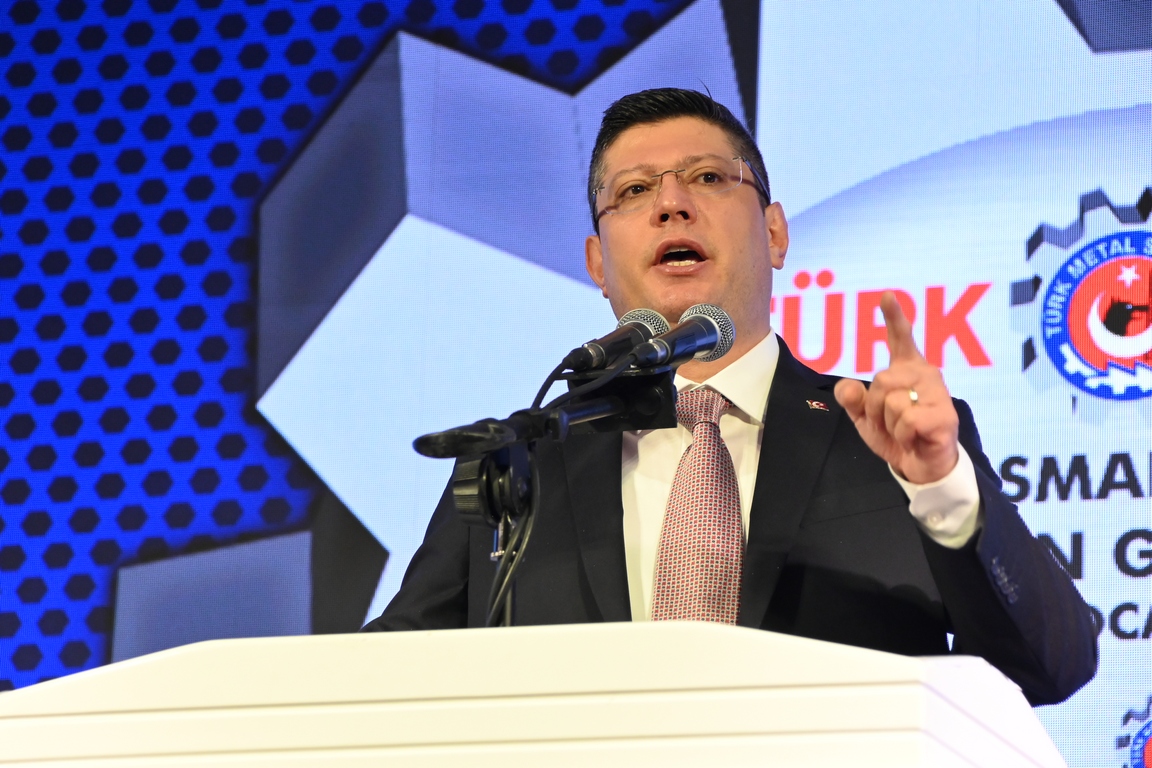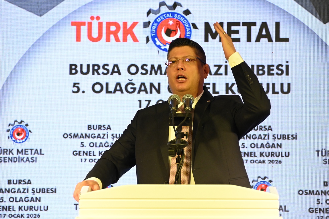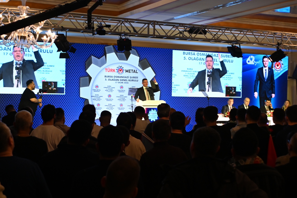 Bakın Osmangazi Şubemiz son dört yılda beş yeni işyerini ailemize kattı. O işyerlerinde toplu sözleşme imzaladı. Bir işyeri için de yasal süreç devam ediyor. Yaşanan her türlü zorluğa, kötü niyetli işverenlerin baskılarına rağmen Türk Metal olarak 2025 yılında 17 işyerinde örgütlendik. Örgütlenme mücadelemize kararlılıkla devam edeceğiz. Bugüne kadar olduğu gibi bundan sonra da nerede bir hak arayışı varsa orada olacağız. Türk Metal diyen tek bir metal emekçisi dahi olsa onun yanına gideceğiz. Onu yalnız bırakmayacağız. Türk Metalli olmanın ayrıcalığını ona yaşatacağız. Özellikle aramıza yeni katılan arkadaşlarımız için söylüyorum. Bizi bu kutsal çatının altında bir araya getiren, Türk Metal bayrağı altında birleştiren e-devletten elde edilmiş sade bir üyelik değildir. Bizi, birbirimize böylesine kenetleyen, yalnızca metal sektöründe çalışıyor olmamız da değildir. Bizi biz yapan, bizi böylesine kenetlenmiş, sıkılı bir yumruk haline getiren aynı duygularla, aynı özlemlerle çarpan yüreklerimizdir. Sendikamızın her duvarında yazılı olduğu gibi üretmek, kazandırmak ve hakça kazanmak için coşkuyla atan yüreklerimizdir. Bizi birbirimize bağlayan ideallerimizdir, mücadelemizdir, hayallerimizdir. Sözünü ettiğim bu değerler inanın bana parayla, pulla ölçülmez. El ele, gönül gönüle verilen bir mücadelenin helal kazanılmış bir ekmeği bölüşmenin verdiği hazzın maddi bir karşılığı yoktur. Onu ancak yaşayanlar bilir. Onu ancak yaşayanlar anlar. Onu ancak Türk Metalliler bilir. Türk Metalliler anlar.
