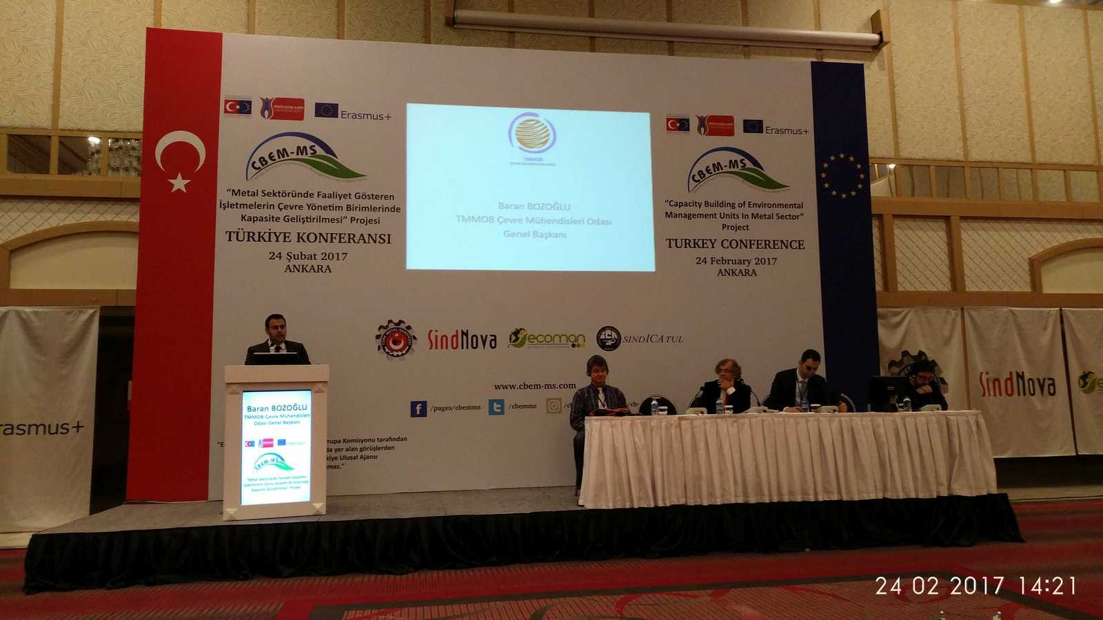 Erasmus+ 2014 yılı Ana Eylem 2 Stratejik Ortaklıklar Mesleki Eğitim Programı kapsamında düzenlenen “Metal Sektöründe Faaliyet Gösteren İşletmelerin Çevre Yönetim Birimlerinde Kapasite Geliştirmesi” Türkiye Konferansı 24 Şubat 2017 tarihinde Ankara Green Park Otel’de yapıldı. Konferans’ın açılış konuşmasını Genel Sekreterimiz Av. Taliphan Kıymaz yaptı. Genel Sekreterimiz Kıymaz, CBEM-MS Projesi’ne Türkiye’de ilk defa yeşil yakalı personel altyapısı oluşturmak için başlatıldığını vurguladığı konuşmasında şunları söyledi: “CBEM-MS Projemizle, şirket düzeyinde yürütülen çevre politikaları ile uygulamaların verimli transferini sağlayarak, yeşil yakalı çalışan yani "çevre destek elemanı" rolünü belirleme ve geliştirme ihtiyacına yanıt vermeyi hedefledik. Bu hedef çerçevesinde, Türkiye, İtalya ve Romanya’dan sivil toplum kuruluşu uzmanlarının, üniversitelerin ve sektör temsilcilerinin de yer aldığı bir teknik komite tarafından hazırlanan içerik ile birlikte 15 işçi 1 ay süre ile eğitim görerek uluslararası kapsamda ilk yeşil yakalı çalışanlar olarak sertifikalandırılmıştır. Ayrıca bu eğitimlerin yaygınlaştırılması ve ülkemizin kullanımına sunulması adına eğitim videoları, kitaplaştırılmış ders içerikleri ve sunumlar isteklilerin kullanımına sunulmuştur” dedi.