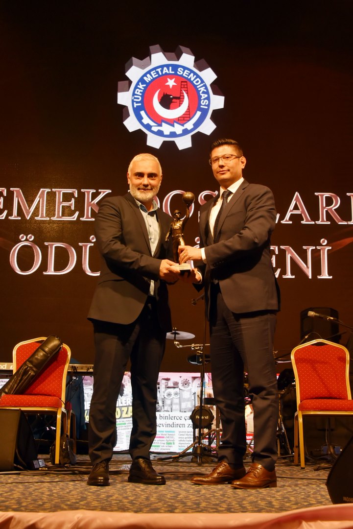 Genel Başkanımız Pevrul Kavlak’ın konuşmasının ardından ödül törenine geçildi. Emek Dostları Ödül Töreni’nde akademisyenler Prof. Dr. Serpil Aytaç, Prof. Dr. Fevzi Demir; gazeteci Olcay Büyüktaş Akça, Ahmet Çelik, Ahmet Emin Yılmaz, Namık Göz, Halil Ataş; televizyoncular Merdan Yanardağ, Serdar Kuter, İlker Karagöz, Ahmet Ergen, Seda Akyüz, Kübra Ulutaş, Erdinç Karakaş; uluslararası sendikacı Gianni Alioti, Anatoli Kubrachenko ile sendikamız Avukatlarından Hüseyin Ekmekçioğlu’na sendikamızın faaliyetlerine verdikleri destekten dolayı metal emekçileri adına ödülleri takdim edildi.