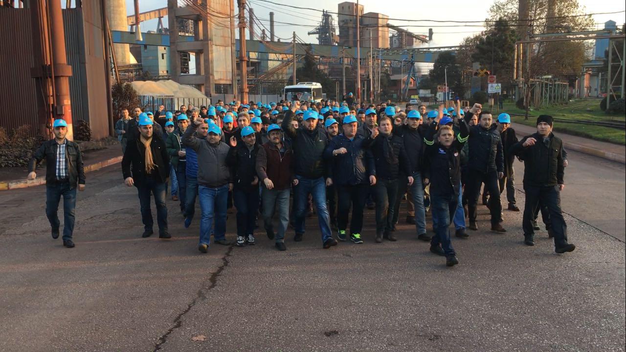 Grev kararı sonrası Erdemir emekçileri 8-16 vardiyası çıkısında Erdemir ana giriş kapısında toplanarak ilk eylemlerini gerçekleştirdiler. Erdemir emekçilerini fabrikanın ana giriş kapısında eşleri ve çocukları karşıladı. Kalabalığa hitap eden Kdz. Ereğli Şube Başkanımız Metin Ercan ise “Genel Başkanımız yol haritamızı çizdi. Görevimiz çizgiden çıkmadan o yolda yürümektir. Bugünkü eylemimiz bu yolda bir adımdı, emin olun bu yolun sonun da zafer var” dedi.
