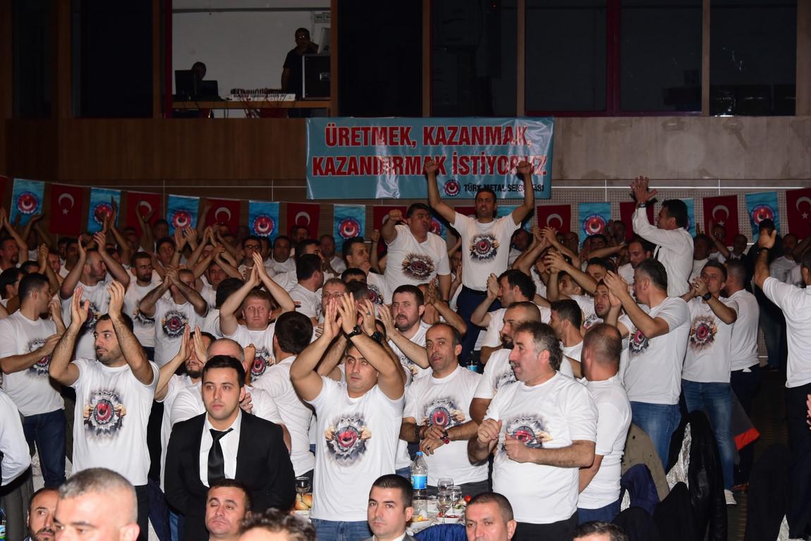 “Kürsüye çıkmadan hemen önce aldığım son mesajı da sizlerle paylaşmak istiyorum. Renault’taki arkadaşlarım göndermiş. Onların da yürekleri burada atıyor. Onlar da bizim için mücadele edin bizim için kazanın diyorlar. Sizlere dayanışma ve destek mesajı yolluyorlar. Bir de hepimize bir müjde göndermişler. Aynen okuyorum. Demişler ki; “Başkanım, Renault’ta her dakika arkadaşlarımız geliyor, üye oluyor. Yeniden Türk metal diyor. Fark her dakika artıyor. Şu anda 800 üye fazlamız var.” Evet, aynen böyle demişler. Yani dostlarım bir tek Renault kalmıştı. Orada da çoğunluğu sağlıyoruz. Haksızlığa, baskıya, yalana dolana direnen yeniden Türk Metal deme olgunluğunu ve cesaretini gösteren Renault’taki bütün kardeşlerimi kutluyorum. Hepsiyle gurur duyuyorum. Madem Renault’taki kardeşlerimiz bize bir müjde verdi. Ben de onlara bir müjde vereyim. Çok önceden planlanmış hem içerde hem dışarda çok yoğun bir gündemimiz var. İptal edemeyeceğimiz programlarımız var. Kritik sözleşme sürecimiz devam ediyor. O yüzden Renault’a gelmem biraz gecikti. Ama size söz ilk fırsatta Renault’a geleceğim ve seçimin startını vereceğim. Yeni yıla seçimle gireceğiz. Yeni yılda yeni şubeyle çalışacağız. Hepimize hayırlı uğurlu olsun.”