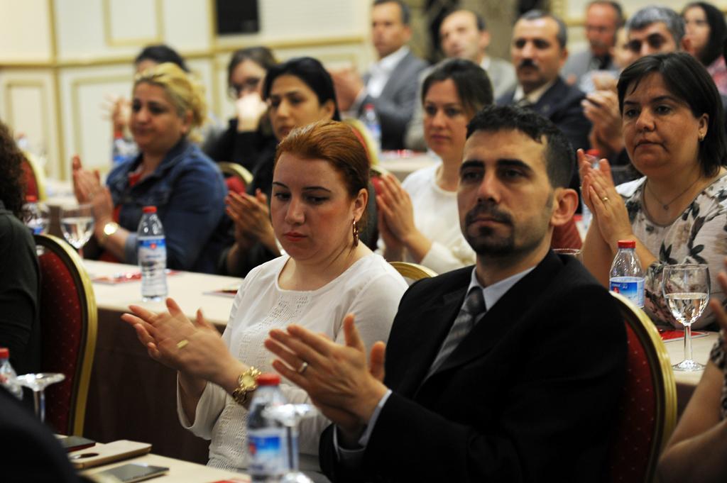 İzmir 1, İzmir 2 ve Manisa 1 Nolu Şubelerimizden Anadolu Down Town Hotels Ankara’ya gelen 160 kişilik şube kurullarımızın ve temsilcilerimizin katıldığı eğitim programının açılışına TÜRK-İŞ Başkanı Ergün Atalay ve Genel Başkanımız Pevrul Kavlak katıldı. Öncelikle üyelerimize hitaben konuşan Genel Başkanımız Pevrul Kavlak; Türk Metal’in son beş yılda neler yaptığını ve sendikamızın geldiği noktayı özetledi. Yapılan yatırımların Türk Metal üyeleri ve geleceği için olduğunun altını çizen Genel Başkanımız Kavlak; “inşallah yaz sezonunun uzun sürdüğü bir bölgede Antalya ya da Bodrum gibi bir yerde bir otelimizi daha sizlere kazandıracağız ve yine açılışını yine sizlerle birlikte yapacağız” dedi.