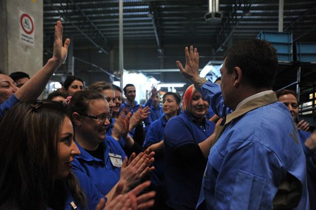 Gemlik Ficosa emekçileri Genel Başkanımız Pevrul Kavlak’ın ziyareti sırasında sevgi gösterisi yaptı.