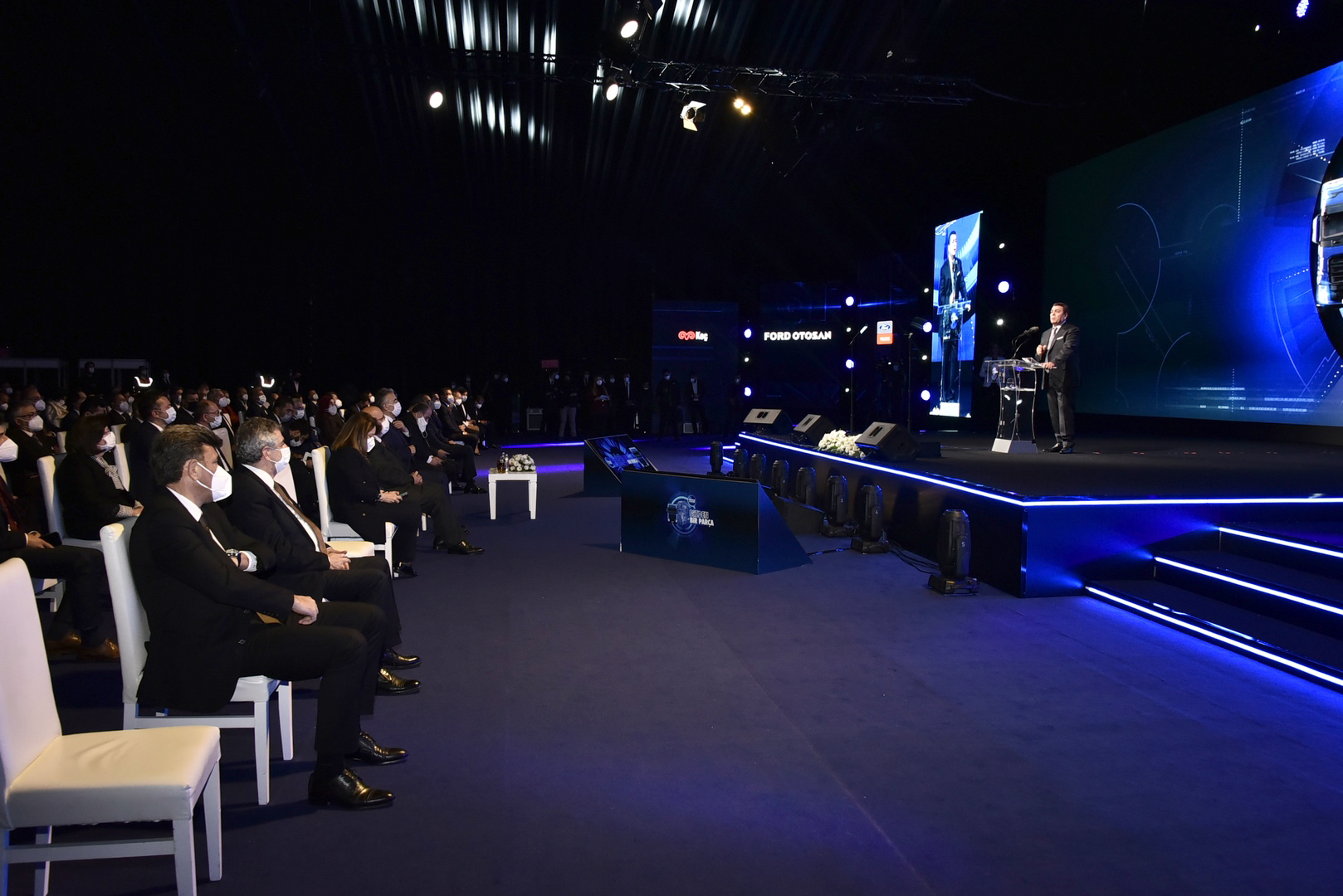 Genel Başkanımız Kavlak’ın konuşmasının ardından kürsüye son olarak Sanayi ve Teknoloji Bakanı Mustafa Varank çıktı. Bakan Varank konuşmasında ülkemizde alınan önlemler neticesinde dünyada araç satışları azalırken Türkiye'de böyle bir durum yaşanmadığını dile getirerek, “Asıl hedef bu artışı sürdürülebilir hale getirmek. Endüstrideki değişim rüzgârlarını iyi okuyarak, sektör ile dirsek teması halinde adımlar atıyoruz” dedi. Konuşmasında işçi ücretlerine ne değinen Bakan Varank, “Çalışanlara bu yıl ciddi zamlar yapmamız lazım, onları üretimde tutacak adımları atmamız lazım. İşçi ve işveren görüşmelerinde çalışana gerçek bir zam oranı konusunda anlaşmaya varılmasını umarım” ifadelerini kullandı.