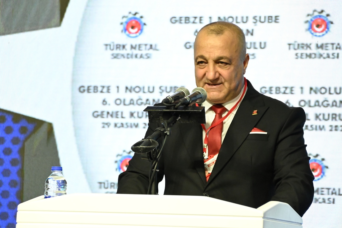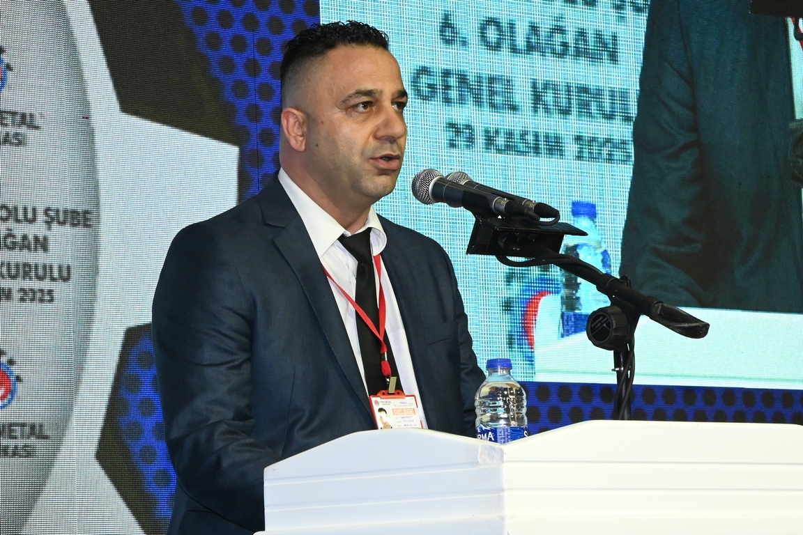 “Değerli arkadaşlarım, bu salonda bulunan herkesin birbirinden farklı özellikleri, farklı hayatları var. Pek çoğumuz ülkemizin farklı bölgelerinden geldik. Ekmeğimizin peşinde gurbete çıktık. Buralarda kendimize bir hayat kurduk. Farklı bölgelerden, başka kültürlerden gelmemize rağmen hepimizin ortak özellikleri, sahip olmaktan onur duyduğumuz ortak değerlerimiz var. Bunların başında canımız pahasına sevdiğimiz, uğruna ölümü göze alacağımız vatanımız, Türkiye’miz var… Gölgesinde soluklandığımız, ay yıldızlı al bayrağımız var. Bir de hepimizi bir yapan, birlik yapan, bizleri aynı sofrada buluşturan, aynı ekmeği paylaştıran, sırtımızı güvenle dayadığımız sendikamız var. Türk Metalimiz var. Buradan kalbi bizimle birlikte çarpan, Türkiye'nin dört bir yanındaki yüzbinlerce metal emekçisini, şahsım ve Türk Metal Sendikamız adına selamlıyorum. Gebze 1 Nolu Şubemizin 6. Olağan Genel Kuruluna hoş geldiniz.
