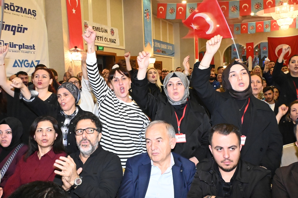 Değerli kardeşlerim, biz örgütlenmek zorundayız. Emekçiler örgütlenmek zorunda. Biz sadece rakamlar, istatistikler için değil. Biz, örgütlenmeyi metal emekçilerinin insanca yaşayabilmesi için yapmalıyız. Asgari ücrete mahkûm edilmiş, alabildiğine sömürülen, geçtiğimiz günlerde Dilovası’nda olduğu gibi alınmayan önlemler nedeniyle iş cinayetlerinde hayatını kaybeden canlarımız gibi emekçileri de sendikal güvenceye kavuşturmalıyız. Türkiye’nin en büyük sendikası olarak bize düşen en önemli sorumluluk budur. Buradan asgari ücretle çalışmak istemeyen, güvencesiz çalışmak istemeyen tüm emekçileri sendikalı olmaya davet ediyorum. Metal işkolunda artık yeter diyen sendikasız tüm metal işçilerini Türk Metalli olmaya davet ediyorum. Güçlü Türk Metal sizin yanınızdadır. Ve şükür ki karşımıza çıkan her zorluğa, önümüze konan türlü engellemelere rağmen, işçiyi görmezden gelen, emeği değersizleştiren, sendikal hakları yok sayan tüm anlayışlara rağmen bugüne kadar bu mücadeleyi başarıyla sürdürdük. Dimdik ayakta durduk, örgütlendik. Birlikte omuz omuza tüm engelleri aştık. Sizden aldığımız güçle birçok işyerine sendikamızın bayrağını diktik. Nice toplu sözleşmeye imza attık, nice kardeşimize sahip çıktık. Kötü niyetli işverenlerin baskılarına, uzun yargı süreçlerine rağmen biz hiç boyun eğmedik. Bu topraklarda işçinin sesi var dedik. Bu topraklarda alınterinin örgütlü gücü var dedik. Bu ülkede Türk Metal var dedik. Biz bugüne kadar olduğu gibi bundan sonra da nerede bir hak arayışı varsa orada olacağız. Daha çok çalışacağız, daha çok mücadele edeceğiz. Metal emekçileri ve onların aileleri için hizmet üretmeye devam edeceğiz. Yan yana durduğumuz, birlikteliğimizi bozmadığımız sürece her zorluğun üstesinden geliriz. Yani siz varsanız, bizim hiçbir mücadeleyi kaybetme ihtimalimiz yok.