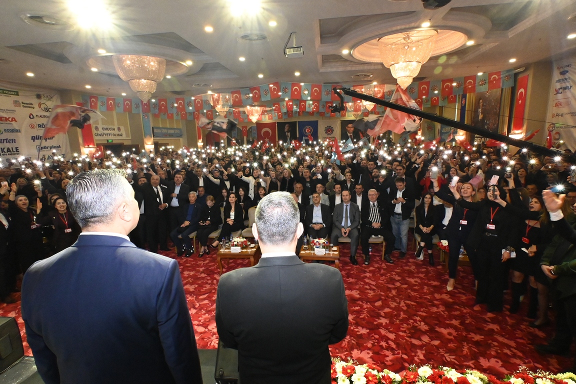 Değerli kardeşlerim, dedim ya hepimiz ülkemizin çeşitli bölgelerinden ekmeğimizin peşinde gurbete çıkmışız diye. İşte onlardan biri de benim. Ben de sizler gibi on yıl boyunca bu bölgede görev yaptım. Şu anda bu salonda bulunan birçok arkadaşımla birlikte çalıştım, aynı sofrayı paylaştım. Gebze Dilovası’nda Şube Başkanı olarak görev yaptığım bu on yıl beni sendikacı yapan, bana mücadeleyi, dayanışmayı, birliği, hepsinden de önemlisi kardeşliği öğreten büyük bir emek ocağının parçası olmanın bilincini aşılayan, hayatımın çok önemli bir dönemiydi. Burada ülkemizin bu önemli sanayi bölgesinde tıpkı benim gibi Anadolu’nun çeşitli bölgelerinden gelen kardeşlerimle bir aile olduk. Hep birlikte bir kaderi paylaştık. Ekmeğimizi bölüştük. Gün oldu fabrika önlerinde yattık, gün oldu alanlara çıktık, büyük zaferleri hep birlikte kutladık. Üzüntülerimizi, sıkıntılarımızı paylaştık. Derdimizle dertlendik. Gün oldu düğünlerde halaylar çektik, gün oldu cenazelerimizi omuzladık. Arkadaşlarımızla birlikte çok çalıştık, çok mücadele ettik. Birçok işyerinde örgütlendik, sözleşmeler imzaladık. İşte bu mücadelemizin neticesinde, bugün genel kurulunu yaptığımız Gebze 1 Nolu Şubemizin açılmasına da vesile olduk. Ne mutlu bana, bizden sonra da Gebze bölgemizde örgütlenme faaliyetlerimiz devam etti. İşyeri sayımız çoğaldı. Üye sayımız artarak devam etti. İnanıyorum ki Gebze'de 3. şubemizin kurulmasına da sizler vesile olacaksınız. Hep birlikte bunu da başaracağız. Bu bölgede görev yaptığım on yıl benim için bir okul oldu. Sendikal anlamda edindiğim ne kadar birikim varsa burada edindim. Dostlarımı burada buldum, ekmeğimi burada kazandım, çocuklarımı burada büyüttüm. O nedenle dostlarım bugün evimde olmanın sizlerle olmanın mutluluğunu yaşıyorum. İyi ki varsınız, iyi ki birlikteyiz.