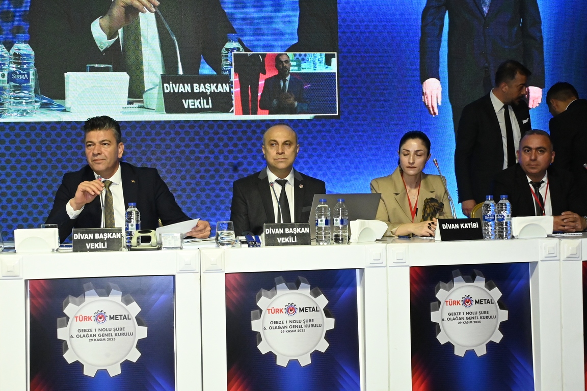 Gebze 1 Nolu Şubemizin 6. Olağan Genel Kurulu 29 Kasım 2025 Cumartesi günü, Genel Başkanımız Uysal Altundağ’ın katılımıyla gerçekleştirildi. Genel Kurulu yönetecek Divan Heyeti’nin teşekkülü ile başlayan genel kurulda, Divan Başkanlığına Genel Başkanımız Uysal Altundağ, Divan Başkan Vekilliklerine Genel Başkan Yardımcımız Mesut Erdem ve Genel Sekreterimiz Taliphan Kıymaz, Divan Katip üyeliklerine ise Diniz Adient işyeri delegesi Yasemin Örnek ve Opsan işyeri delegesi Veysel Kılıç seçildi.