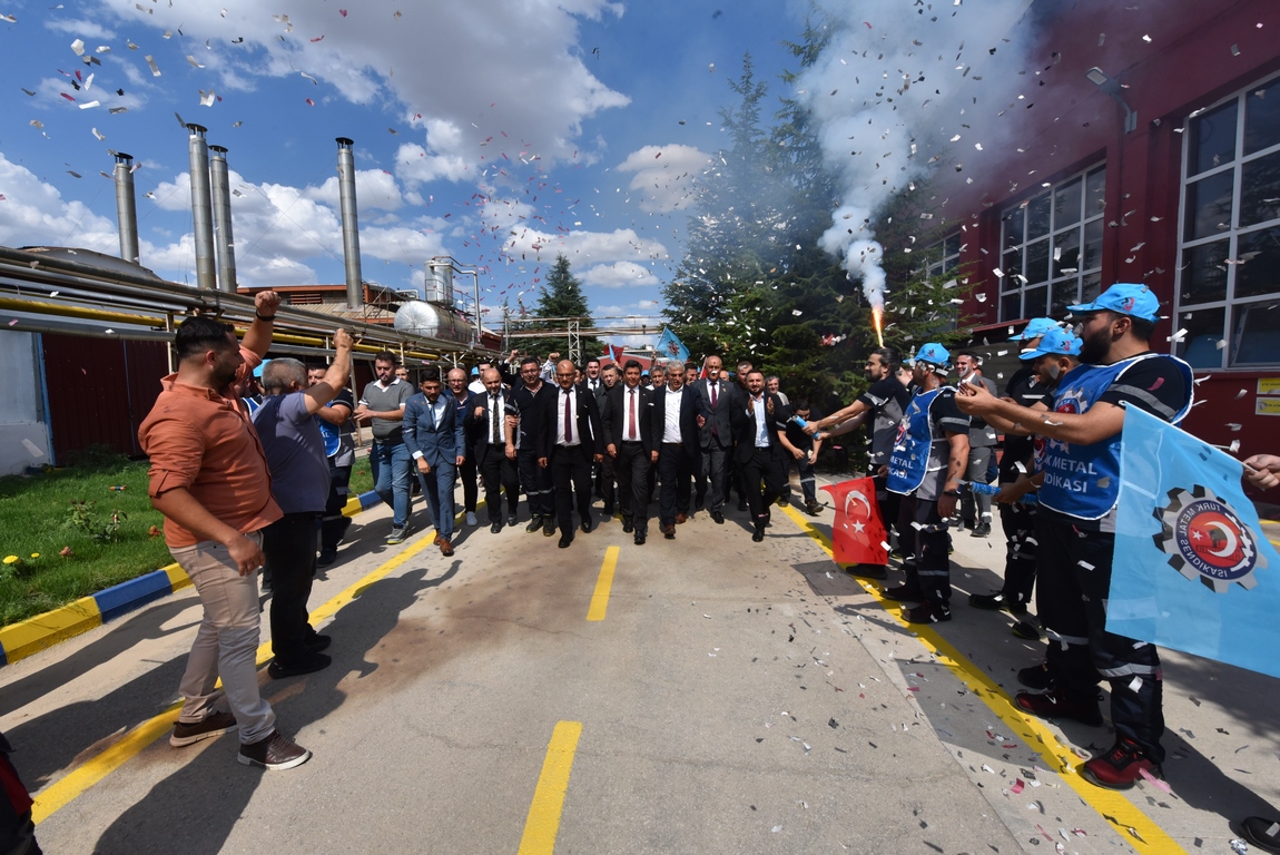 Akabinde Mühimmat, Çelik ve Pirinç ile Silah Fabrikalarını ziyaret eden Genel Başkanımız, üyelerimizle bir araya gelerek çalışma hayatı ve MKE ile ilgili istişarelerde bulundu. Fabrikalarda üyelerimiz tarafından yoğun coşku ve ilgi ile karşılanan Genel Başkanımız Uysal Altundağ, Sendikamızın 61. kuruluş yıldönümünde Kırıkkale’de olmaktan duyduğu memnuniyeti dile getirdi.
