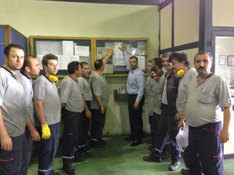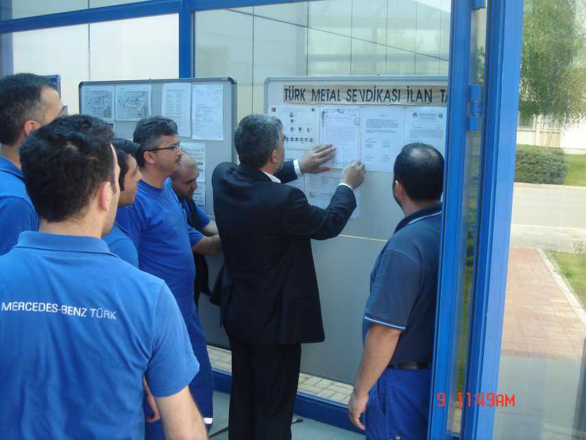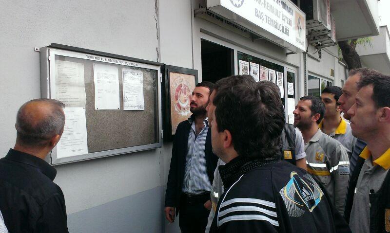 Genel Yönetim Kurulumuzun aldığı “Grev Kararı”nın Genel Başkanımız Pevrul Kavlak tarafından 06 Mayıs tarihinde açıklanmasının ardından Grev Kararı MESS’e bağlı iş yerlerinde panolara ve kapılara asıldı. Temsilcilerimiz tarafından asılan karar yazıları fabrikada çalışan üyelerimiz tarafından büyük takdirde karşılandı.