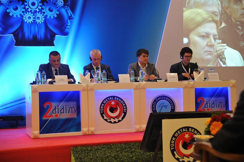 Birinci Konuşmacı, IndustriALL Genel Sekreter Yrd. Monika KEMPERLE, İkinci Konuşmacı; Bilkent Üniversitesi İşletme Fakültesi Öğretim Üyesi Yrd. Doç. Dr.Kadire Zeynep SAYIM Üçüncü Konuşmacı Uluslar arası Avrasya Metal İşçileri Federasyonu Genel Sekreter Yardımcısı Alexander PANYCHEV tebliğlerini sundular.