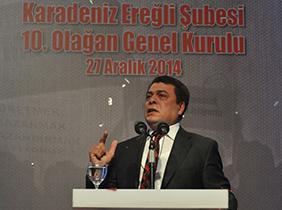 Genel Başkanımız Pevrul Kavlak 27 Aralık’ta Ereğli Büyük Anadolu Hotelde düzenlenen Ereğli Şubemizin Genel Kurulu’nda Divan Başkanı olarak yaptığı konuşmada “İsdemir emekçilerinin yılbaşından sonra kurtuluşa ereceğini, Erdemir emekçileri gibi rahata kavuşacağını, Çelik-İş’in 4 gün sonra tarih olacağını söyledi. Kavlak konuşmasını şu şekilde sürdürdü: