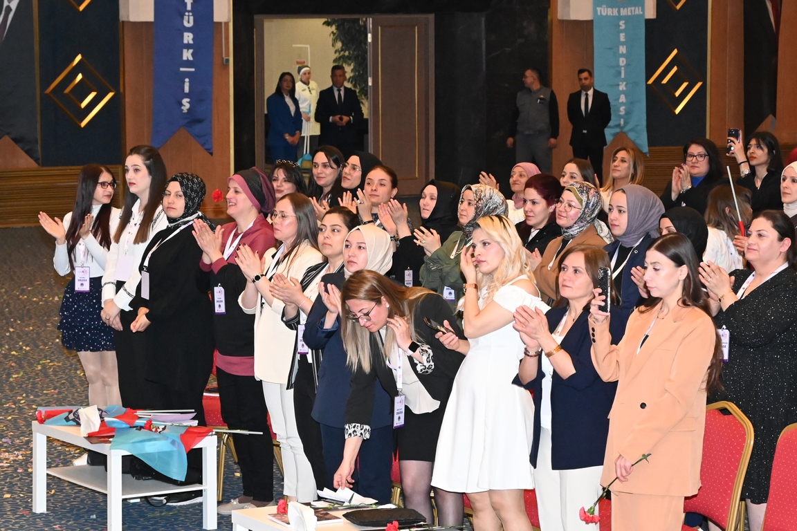 Erkek çalışanın yoğun olduğu bir iş kolunda faaliyet gösterdiğimize dikkat çeken Genel Başkanımız, bu nedenle Türk Metal’in en önemli özelliklerinden biri olan kadın üye sayısının her geçen gün biraz daha artmasından ve kadın üyelerimizin sendikamızın çeşitli kademelerinde sorumluluk almalarından son derece mutlu olduğunu ve bununla gurur duyduğunu belirtti. “Bakın bugün itibariyle bir kadın şube başkanımız, şubelerimizin yönetim kurullarında 10 kadın arkadaşımız, şubelerimizin denetim ve disiplin kurullarında 14 kadın arkadaşımız var. Gururla ifade ediyorum ki erkek yoğun bir işkolu olmamıza rağmen 16 kadın baş temsilcimiz, 124 kadın temsilcimiz var. Bu tablo bize gurur veriyor. Güç ve umut veriyor. Çünkü temsilci ve şube yönetimindeki kadın üyelerimizin sayılarının artması, gelecek yıllarda çok daha fazla sendikasız kadın işçinin sendikalı olması demektir. Bu yalnızca Türk kadınının güçlenmesi anlamına gelmez. Bu aynı zamanda Türkiye’nin de güçlenmesi, içinde bulunduğumuz yüzyılda daha sağlam ve emin adımlarla yürümesi anlamına gelir. Bir sendikacı için bundan daha büyük bir mutluluk olabilir mi? Elbette olmaz” diyerek sözlerini tamamladı.