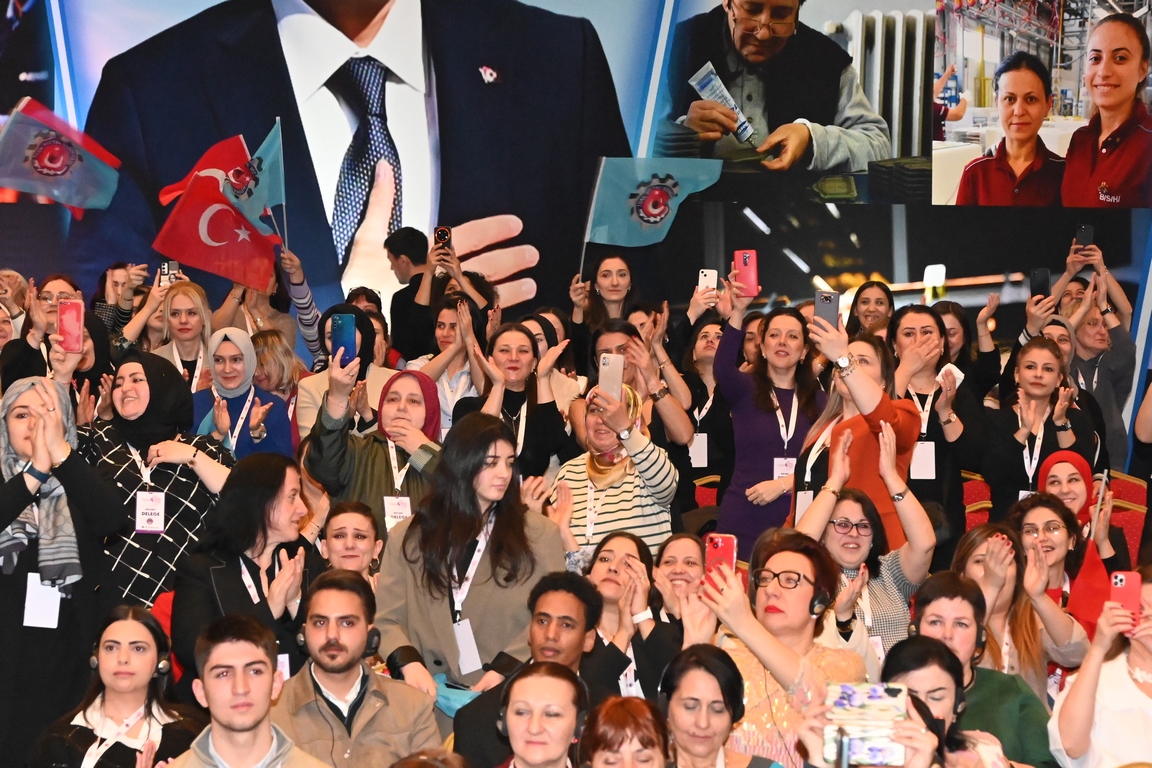 Konuşmasına, kadının yerini gösteren istatistiklere değinerek devam eden Genel Başkanımız Uysal Altundağ, ülkemizdeki kadın istatistiklerine vurgu yaparak şunları söyledi: “Avrupa Toplumsal Cinsiyet Eşitliği Enstitüsünün 2023-2024 verilerine göre ülkemizde, kadınların işgücüne katılma oranı ancak yüzde 37. Üstelik işgücüne katılan kadınların sadece 5’te 1’i tam zamanlı çalışıyor. Toplumsal cinsiyet eşitliğinde ve kadınların eğitime erişimi endeksinde de durum pek iç açıcı değil. Bu araştırmaya göre yine kadınların, sağlık ve hayatta kalma endeksinde, ekonomiye katılım ve fırsatlar endeksinde, siyasi katılım endeksinde gerilerde yer aldığını görüyoruz. Tablo bu, değerli konuklar. Peki, bu tablo karşısında umutsuzluğa mı kapılmalıyız? Hayır! Asla! Neden umudumuzu korumalıyız biliyor musunuz? Bence bunun iki güçlü nedeni var. İlki Atatürk’ün önderliğinde kurulan Cumhuriyetimizin bize kazandırdıkları. Geriye dönüp baktığımda işte bu büyük mirası görüyorum. Batı’da daha kadının adı bile yokken seçme seçilme hakkına sahip olan Türk kadınını, siyasal, ekonomik ve sosyal hayatta öncü rol oynayan kadın yöneticileri, öğretmenleri, pilotları, sanatçıları, bilim insanlarını ve bizleri yetiştiren anaları görüyorum. Diğeri de sizlersiniz değerli kardeşlerim… Türk Metal’in, çalışan, üreten, eğitimli, metale elleriyle şekil veren, aile kuran, çocuk yetiştiren kahraman kadın üyeleri sizlersiniz. Ben, bugüne ve geleceğe baktığımda sizleri görüyorum. Gözlerinizden yansıyan Türkiye sevdasını, ekonomiye yaptığınız katkıyı ve hayatımıza kattığınız o paha biçilmez değeri görüyorum.”