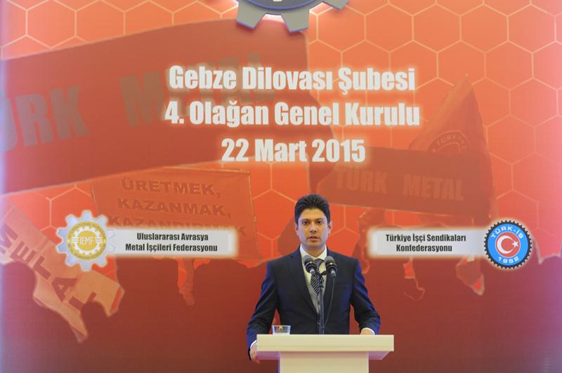 Genel Başkanımız Pevrul Kavlak; 22 Mart Pazar Workinn Otel’de gerçekleştirilen Gebze Dilovası Şubemiz 4, Olağan Genel Kurulu’a katıldı, oy birliği ile divan başkanı seçildi. Divan Başkanı olarak yaptığı konuşmasında geçtiğimiz MESS sözleşme dönemini değerlendirdi. “MESS süreci zorlu geçti. Önümüze memur maaşlarını, emekli zamlarını, enflasyon oranlarını koydular. Sözde sendikaların imzaladığı sözleşme rakamlarını çıkardılar. Kabul etmedik” diyen Kavlak; “Bunları bize getirmeyin dedik. Başkaları bu rakamlara evet diyebilir, ama biz onlardan değiliz dedik. Dedik ve ekledik, biz, mücadele etmeye, bedel ödemeye hazırız. Çünkü biz, masada müzakere etmeyi bildiğimiz kadar, sokakta mücadele etmeyi de biliriz. Bizim kavgadan korkumuz yok” diyerek sözleşme döneminde yaşananları anlattı.