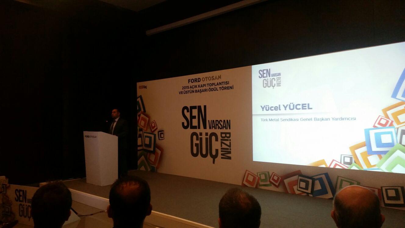 İstanbul Anadolu Yakası Şubemize bağlı Ford Yedek Parça işyeri 2015 Açık Kapı Toplantısı ve Üstün Başarı Ödül Töreni, 16 Aralık Çarşamba günü gerçekleşti. Törene, Genel Başkan Yardımcımız Yücel Yücel ile İstanbul Anadolu Yakası Şube Başkanımız Halil Erdal katıldı. Genel Başkan Yardımcımız Yücel Yücel; son dönemde tekrar artan terör olayları ve gelen şehit cenazelerine değinerek büyük üzüntü duyduğunu belirtti. “Türk Metal olarak bu konudaki hassasiyetimizi daha önce de defalarca belirttik” diyen Yücel; “maalesef sendikayız diye geçinenlerin bu konuda hiç seslerinin çıkmadığını” belirtti.