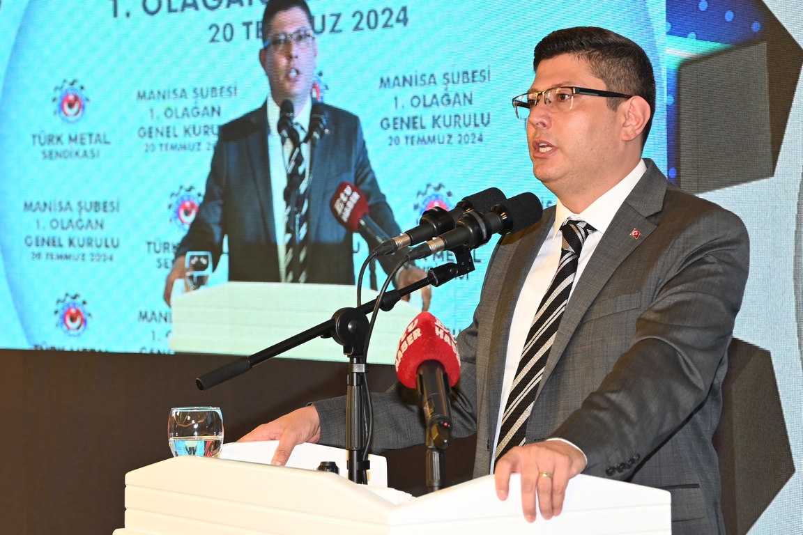 Divan Başkanı olarak delegelere seslenen Genel Başkanımız Uysal Altundağ, Sendikamız Türk Metal’i günümüzde Türkiye’nin en güçlü sendikası yapan özelliklerinden birinin büyük hayaller kurmak ve bu hayalleri birer birer hayat geçirmek olduğunu dile getirirken Manisa ile ilgili şunları söyledi: “Yakın zamanlara kadar ortalama büyüklükte bir şubemizin olduğu bu Anadolu kenti, bugün büyük bir sanayi bölgesine dönüşüyor. Ve Türk Metal bu büyük ve güçlü sanayi kentinde üç şubeye ve toplamda 26 bin üye sayısına ulaşmanın onurunu yaşıyor. Türk Metal Manisa’da, yıllara dayanan büyük bir hayalini gerçekleştiriyor. Ve ne mutlu bana ki Manisa Şubemizin açılışını yapmak, bugün ilk genel kurulunu gerçekleştirmek yani bu büyük hayali hayata geçirmek Genel Başkanınız olarak bana nasip oluyor.”