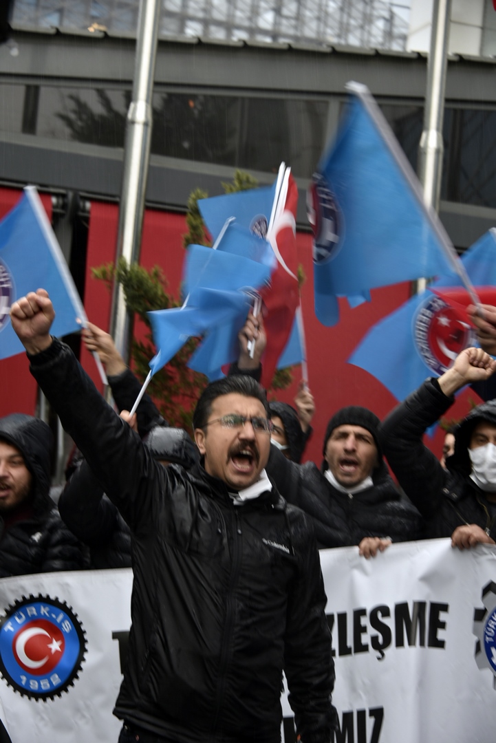 Basın açıklamasında, Sendikamız Türk Metal’in MESS ile görüşmelere iyi niyetle ve umutla oturduğu, ancak gerçek bir hayal kırıklığı ile masadan kalktığını kaydedilerek, “Sanki karşımızda iyi günlerimizdeki ‘sosyal ortağımız’ MESS yoktu da işyerlerindeki huzuru bozmaya çalışan, iş barışının dibine dinamit koymaya çalışan başkaları vardı. Biz sadece ve sadece hakkımızı talep ederken. Biz sadece ve sadece insan onuruna yakışır bir yaşam talep ederken, MESS bize bunları çok gördü. İşte bugün bunun için buradayız. Bize insan onuruna yakışır bir yaşamı çok görenleri uyarmak için buradayız. Onlara sesimizi duyurmak için buradayız, buradan sesleniyoruz: Beyler, bütün dünya salgın yüzünden evine kapandığında, korkudan sokağa bile çıkamaz olduğunda, biz işimizin başındaydık. Eğer unuttuysanız hatırlatalım: En zor, en ağır, en imkânsız koşullarda bile ürettik. Yeri geldi, beraber çalıştığımız kardeşimizi toprağa verip, tezgâhımıza geri döndük. Geri döndük ve çalıştık, ürettik, sizlere kazandırdık. O günleri unutmayın. Biz, o en karanlık günlerde çalıştığımız gibi mücadele etmeyi de, galip gelmeyi de, ‘Yer artık, yeter!’ demeyi de iyi biliriz” ifadelerine yer verildi.