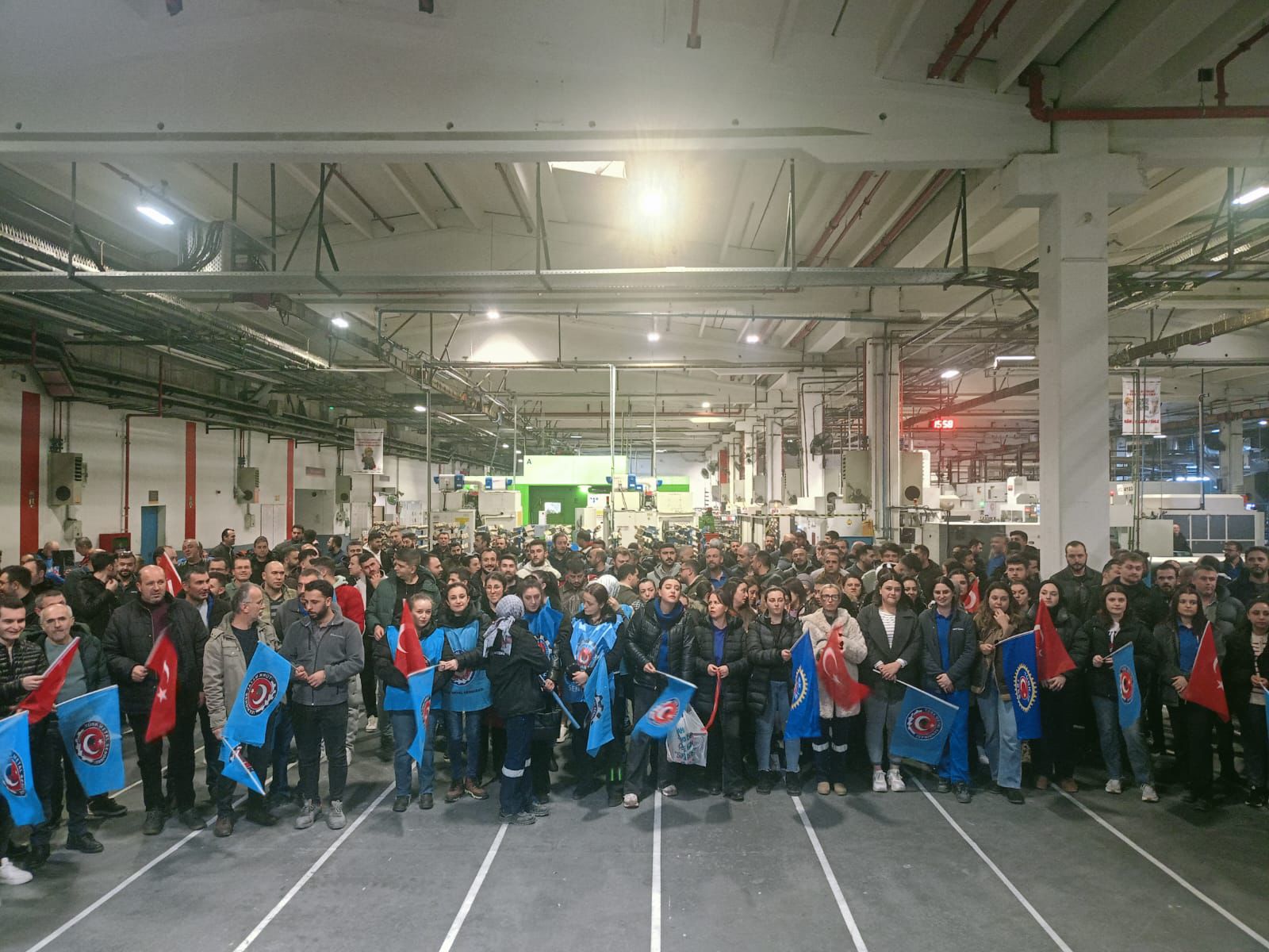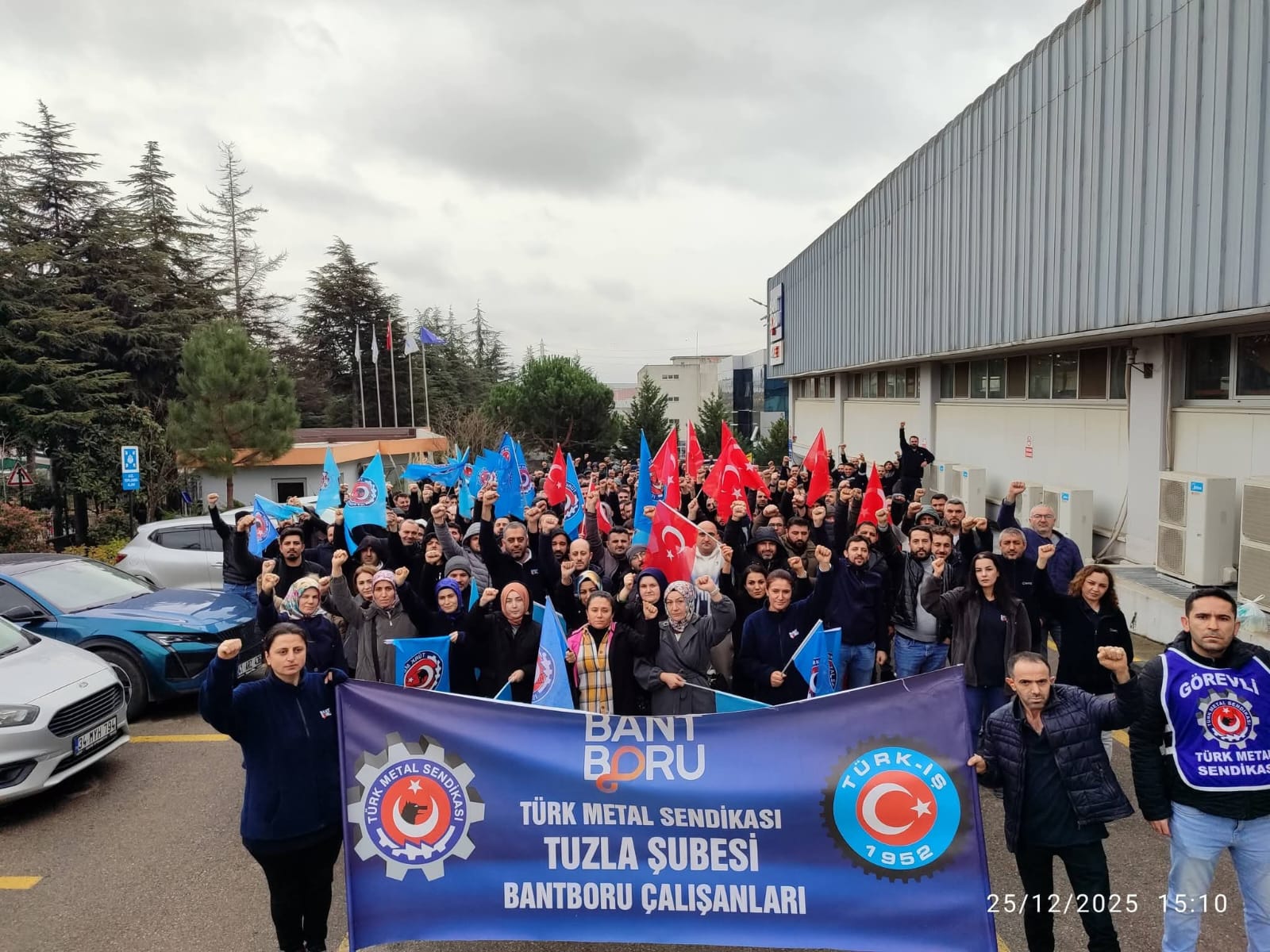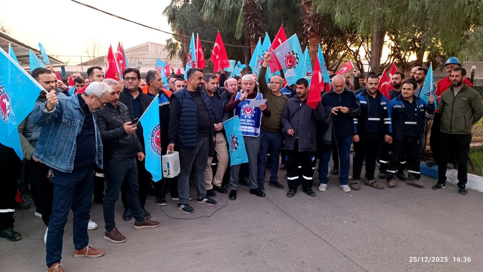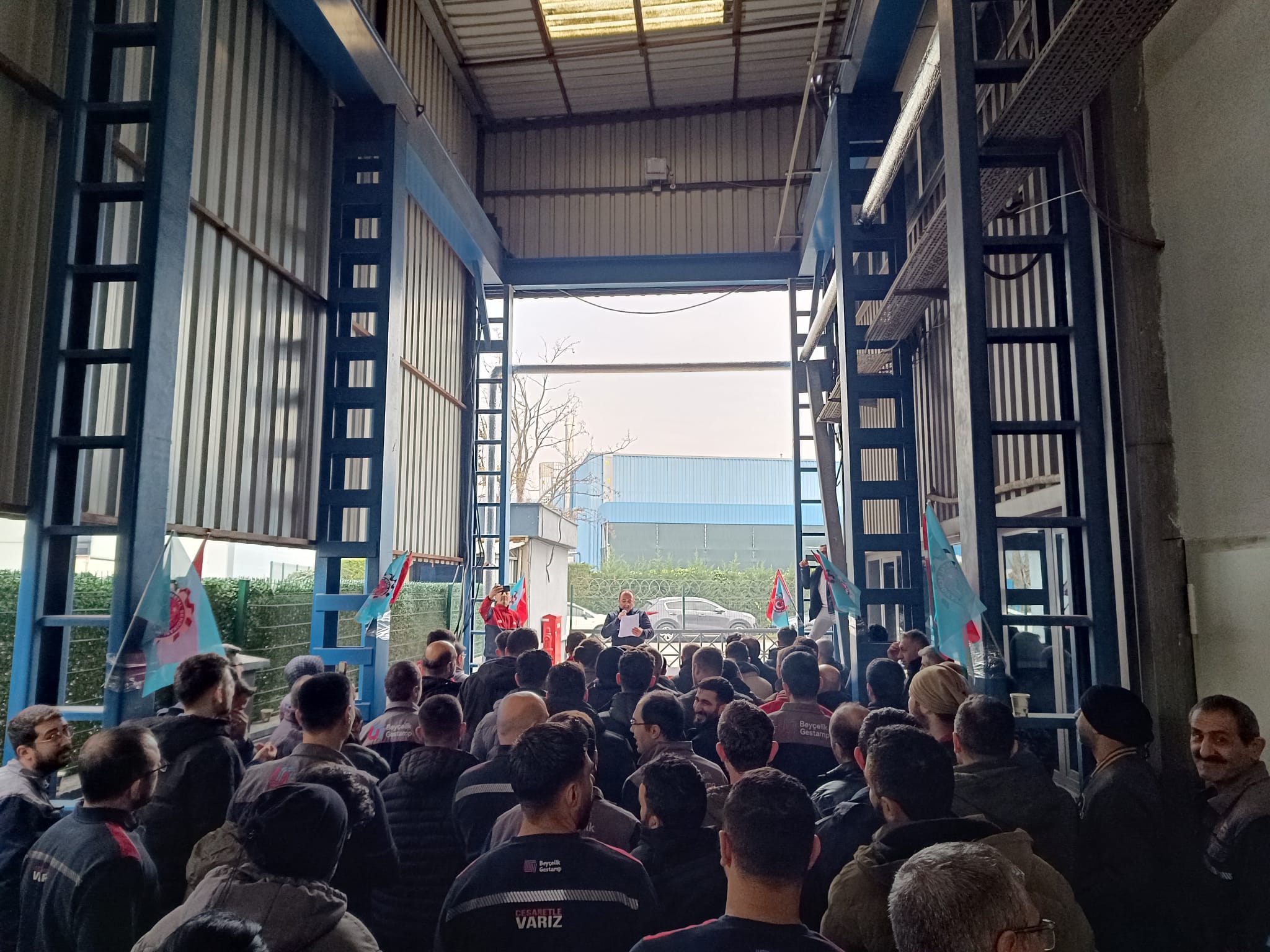 Üyelerimiz, işveren sendikası MESS’in, ülkemizin ekonomik koşullarını ve içinde bulundukları geçim sıkıntısını yok sayan, kazanılmış hakları geriye götüren taleplerine karşı, bugün (25 Aralık 2025 Perşembe günü) vardiya giriş ve çıkışlarında bir araya gelerek ortak basın açıklaması ile tepkilerini bir kez daha ortaya koydu.