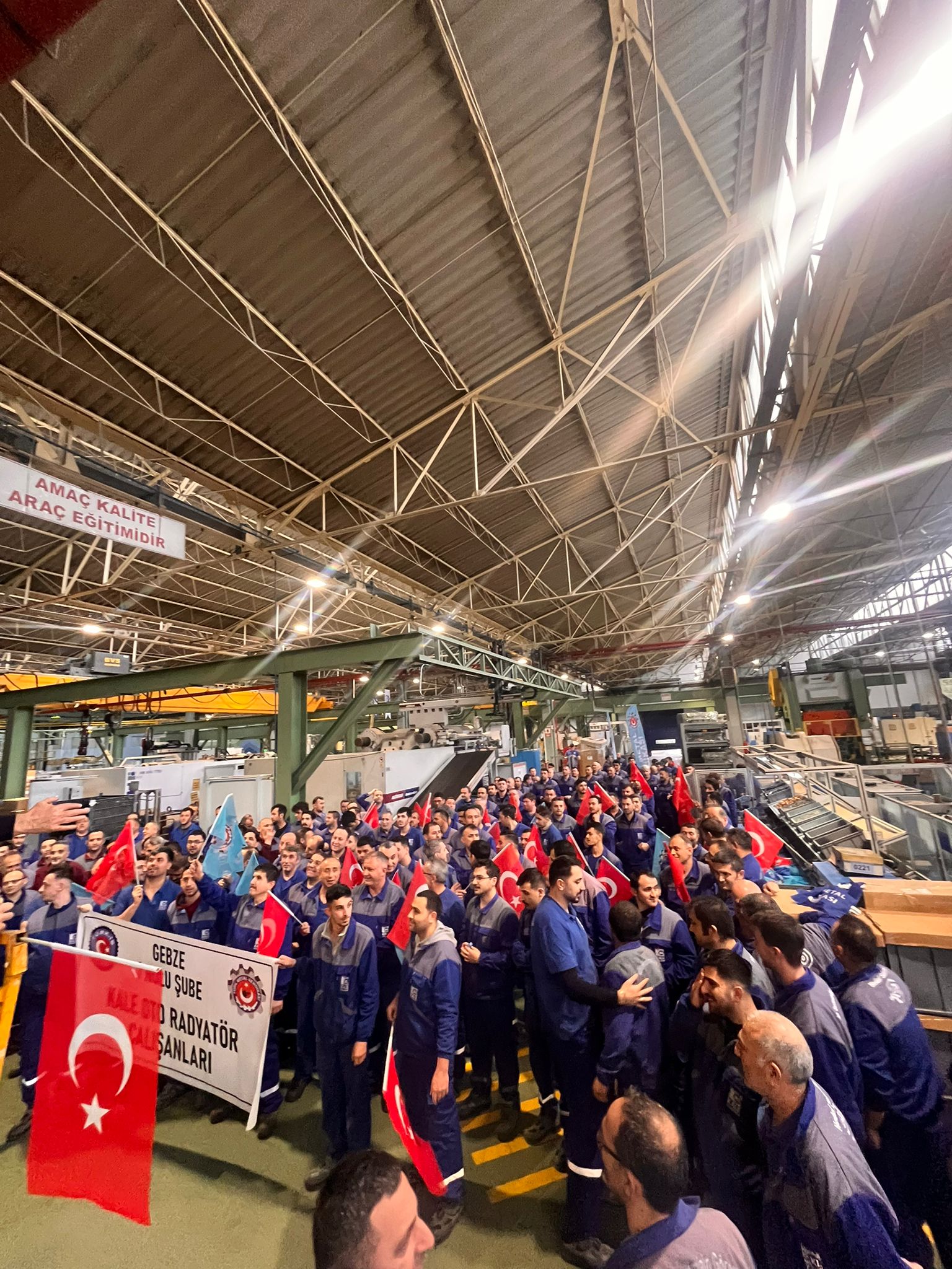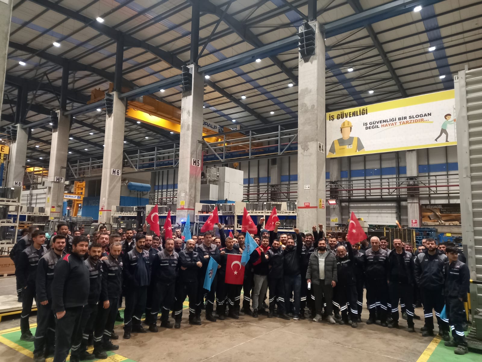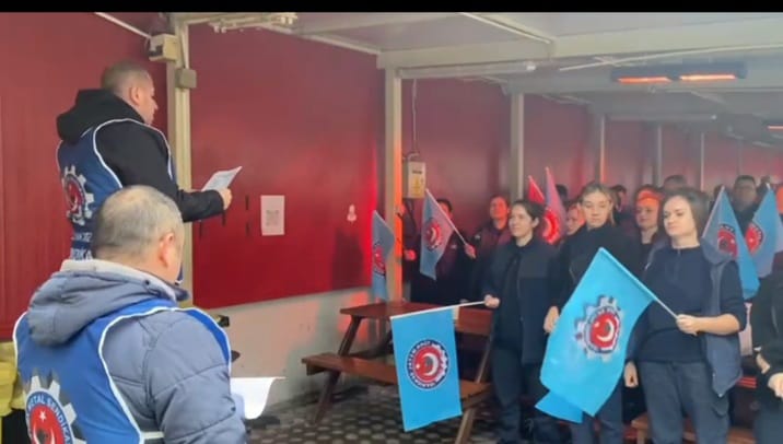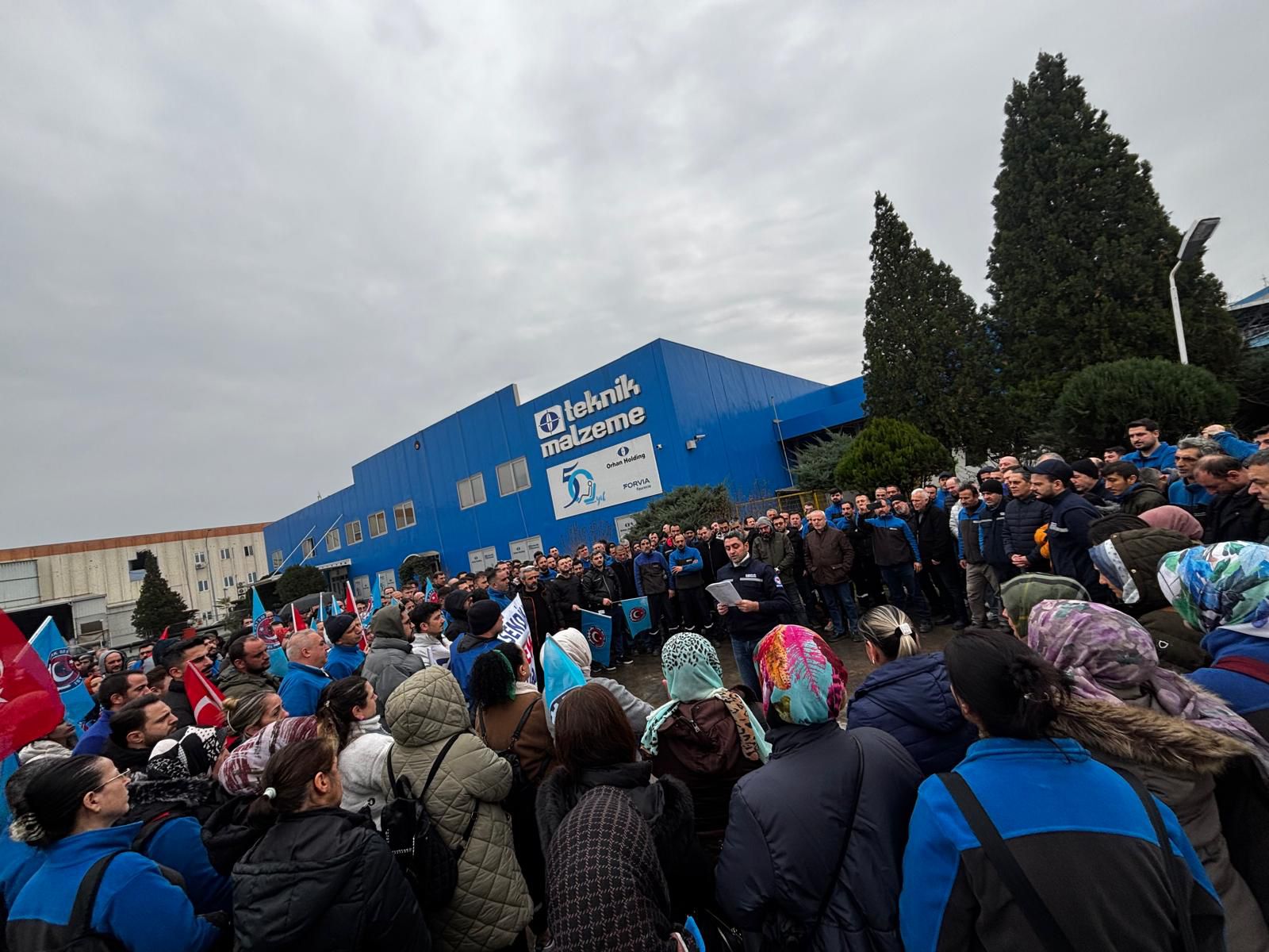 Üyelerimiz, işveren sendikası MESS’in, ülkemizin ekonomik koşullarını ve içinde bulundukları geçim sıkıntısını yok sayan, kazanılmış hakları geriye götüren taleplerine karşı, bugün (25 Aralık 2025 Perşembe günü) vardiya giriş ve çıkışlarında bir araya gelerek ortak basın açıklaması ile tepkilerini bir kez daha ortaya koydu.