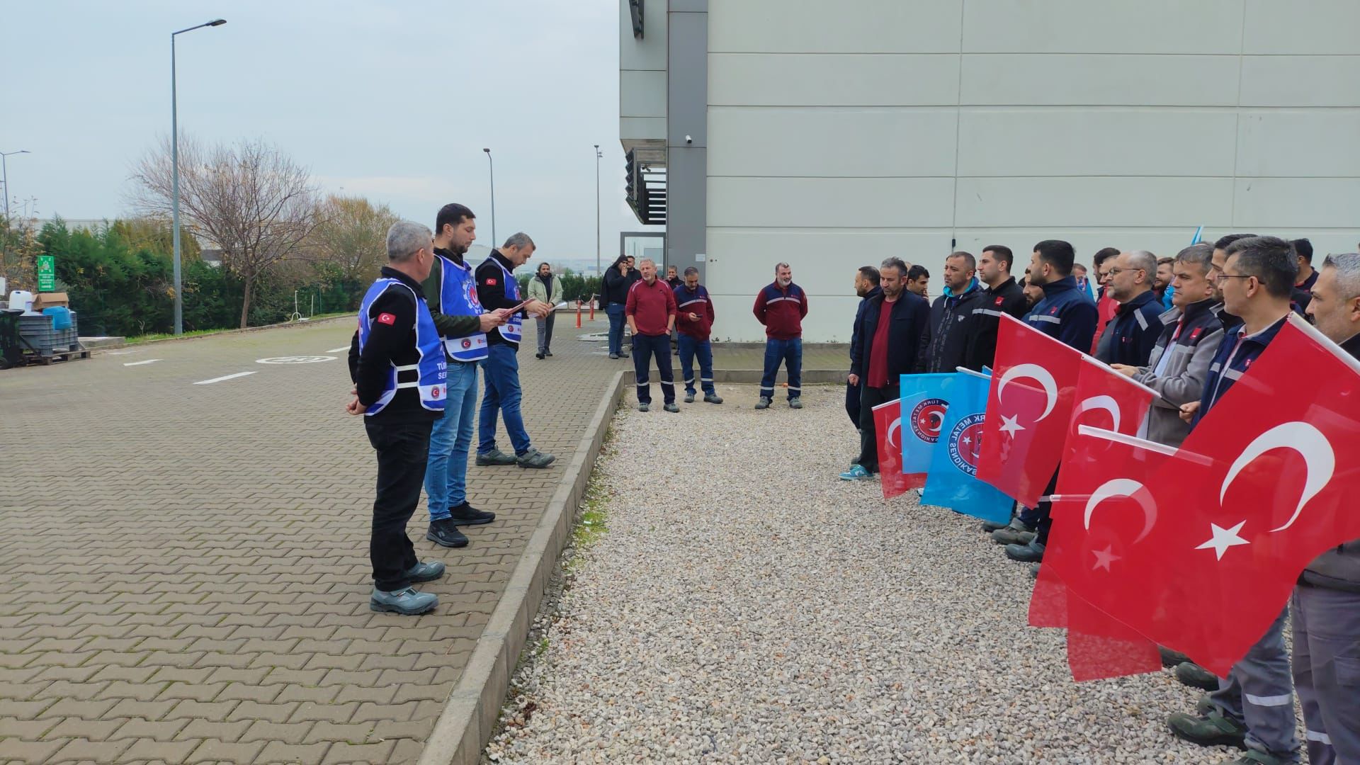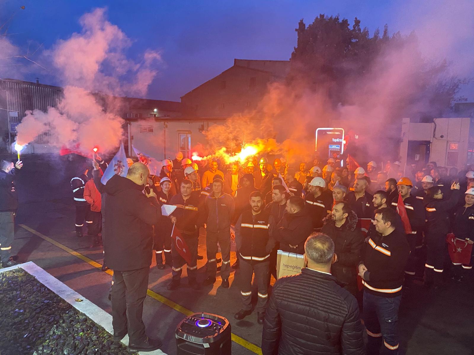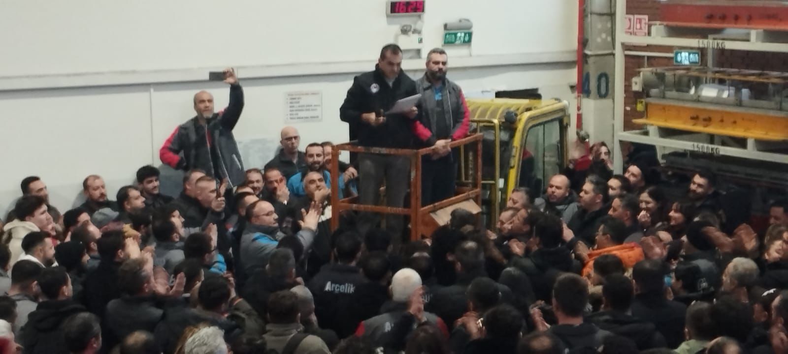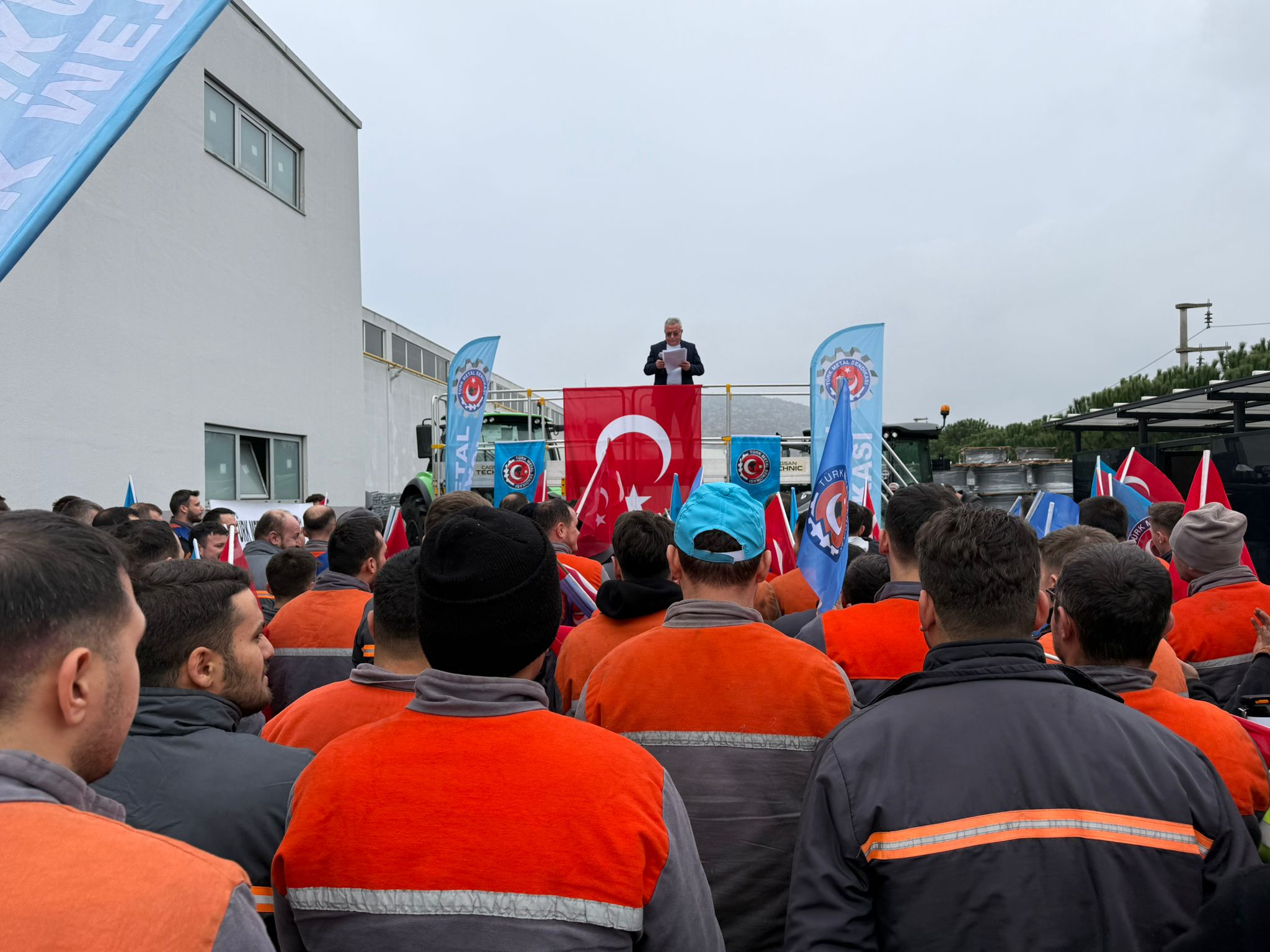 Üyelerimiz, işveren sendikası MESS’in, ülkemizin ekonomik koşullarını ve içinde bulundukları geçim sıkıntısını yok sayan, kazanılmış hakları geriye götüren taleplerine karşı, bugün (25 Aralık 2025 Perşembe günü) vardiya giriş ve çıkışlarında bir araya gelerek ortak basın açıklaması ile tepkilerini bir kez daha ortaya koydu.
