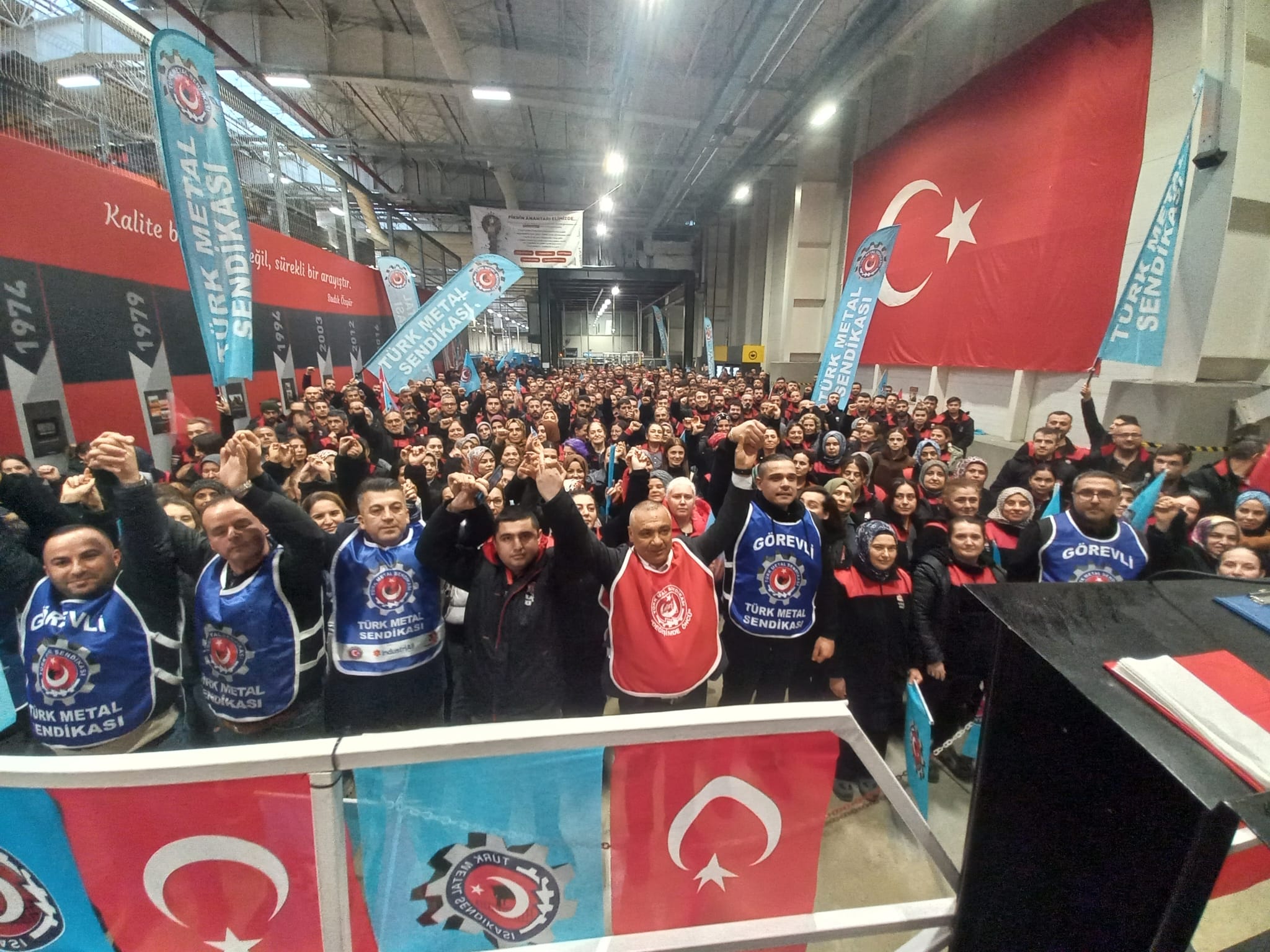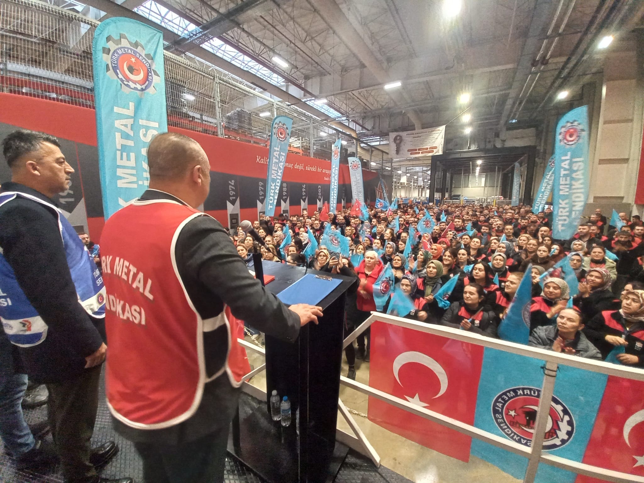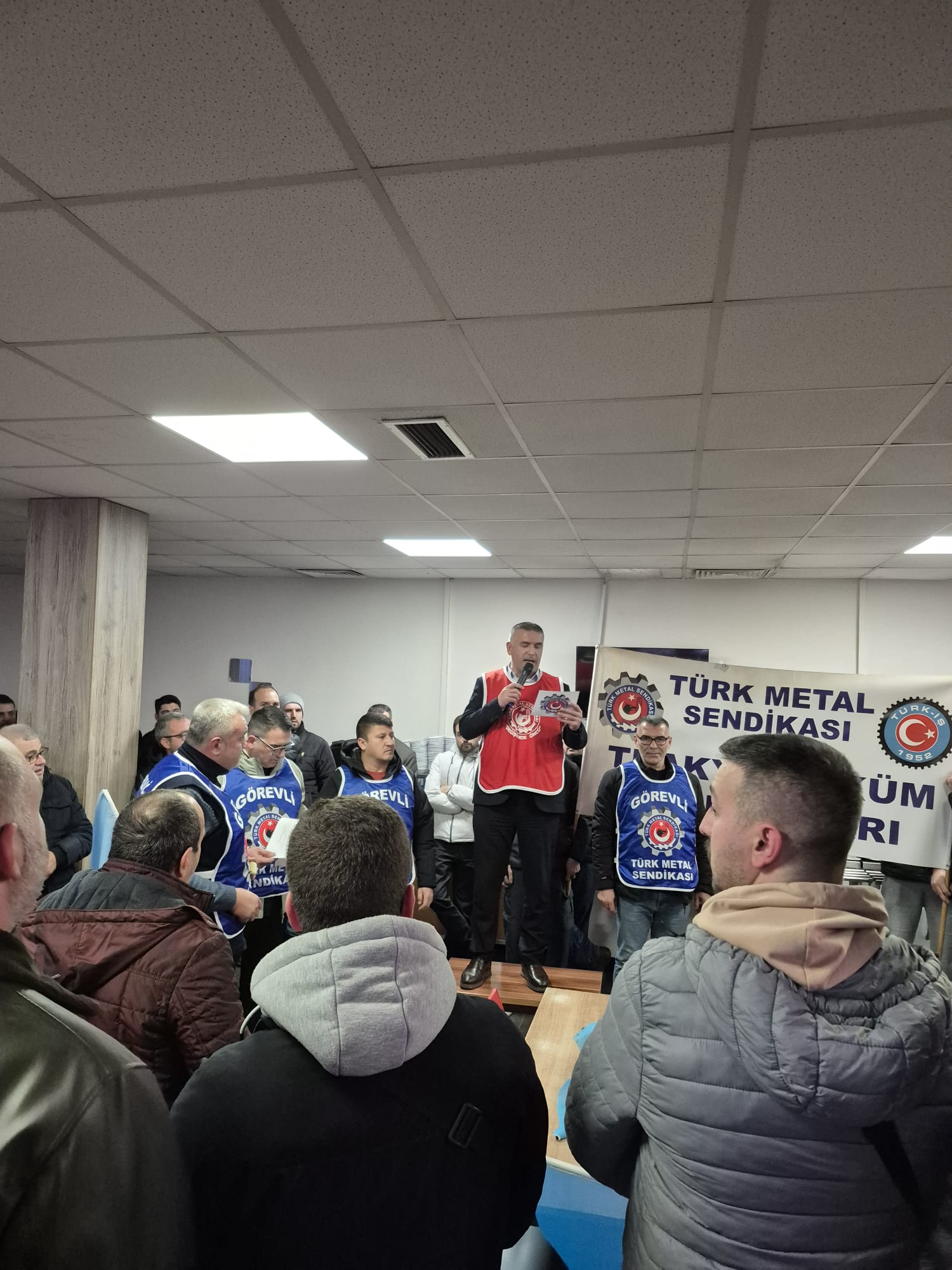 Değerli arkadaşlarım, sendikamız Türk Metal, ülke gerçeklerini, sanayimizin içinde bulunduğu koşulları üyelerimizin yaşam şartlarını, her şeyi ama her şeyi değerlendirerek üyelerimizin de katılımı ile aylarca çalışarak, taslağını vermiş, masaya da uzlaşmak için oturmuştu. Ancak muhatabımızdan aynı yaklaşımı göremedik. Bizim taslağımız, insanca yaşama talebimizdir. Alınterimizin karşılığını almak için Genel Başkanımız Sayın Uysal Altundağ’ın önderliğinde sonuna kadar direneceğiz. Sonunda kazanan biz olacağız.