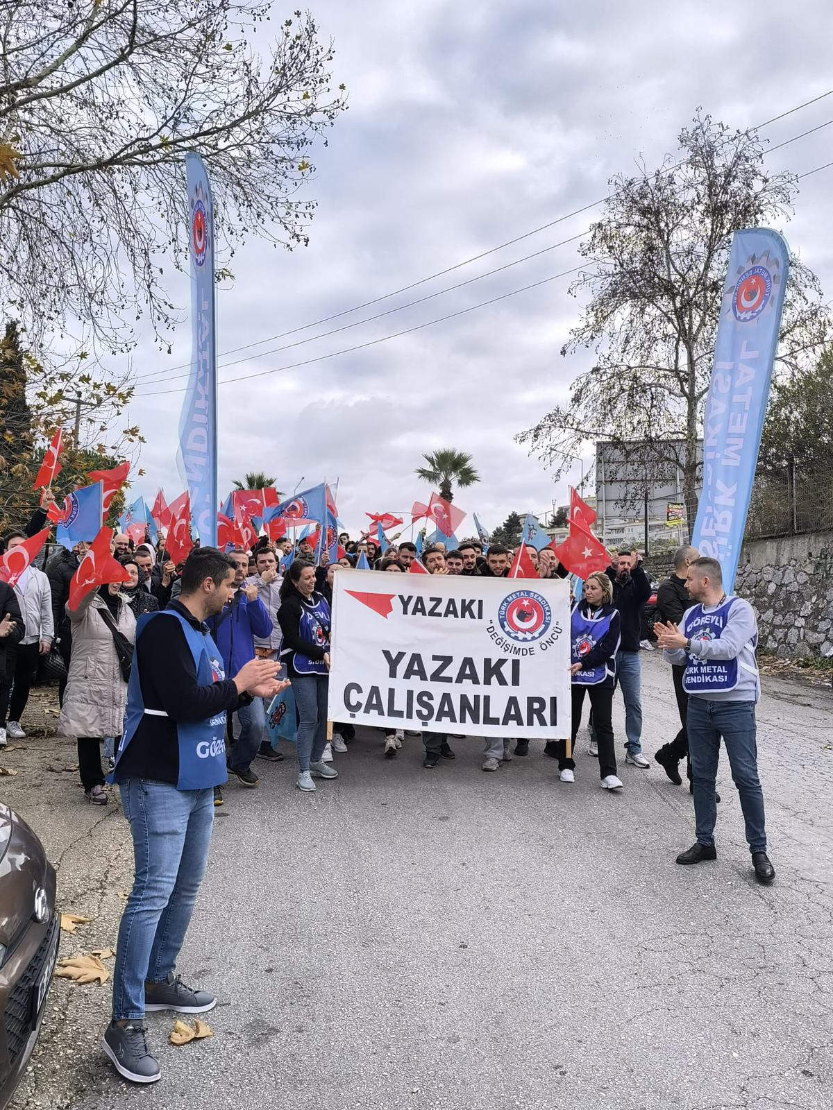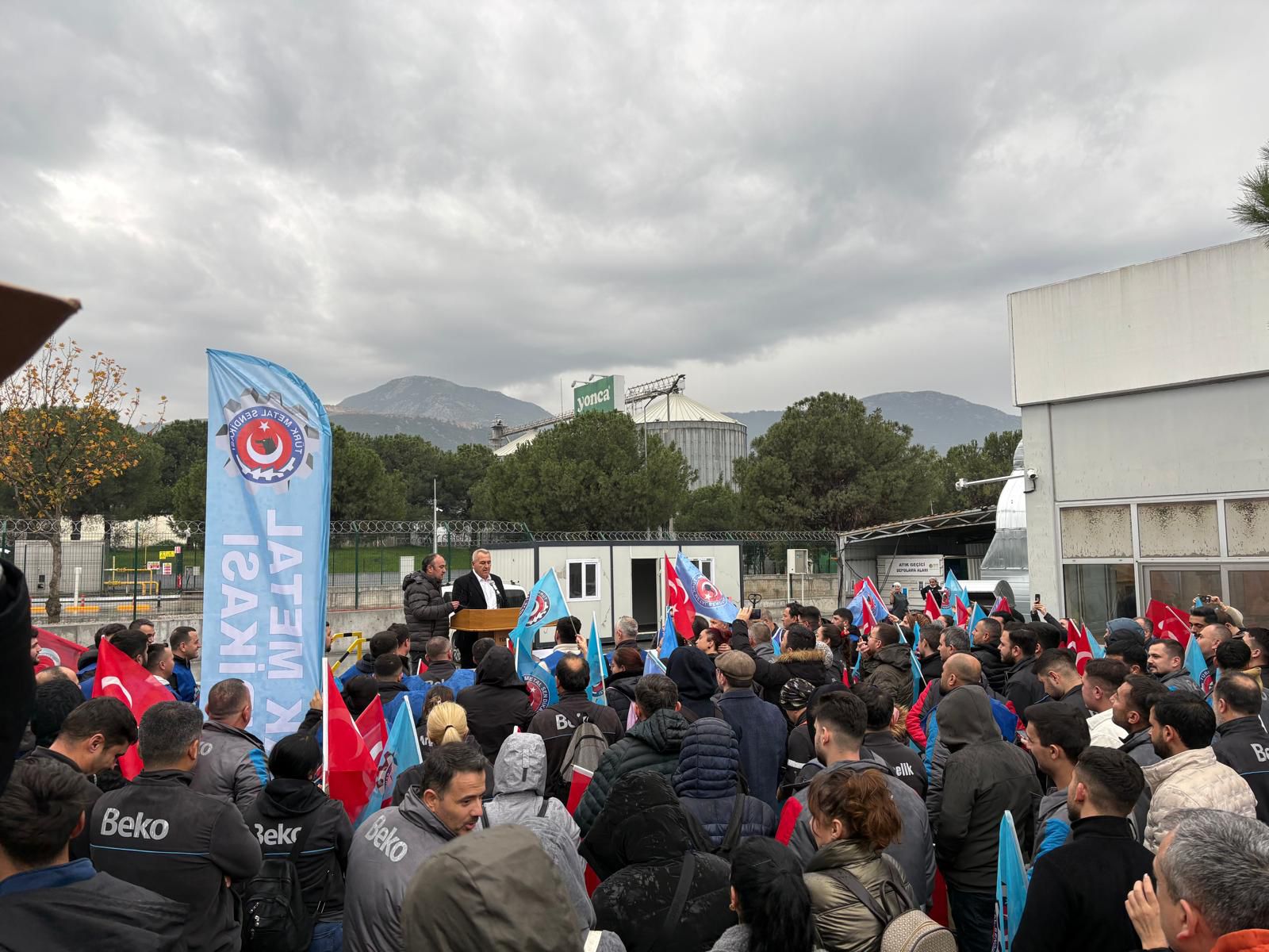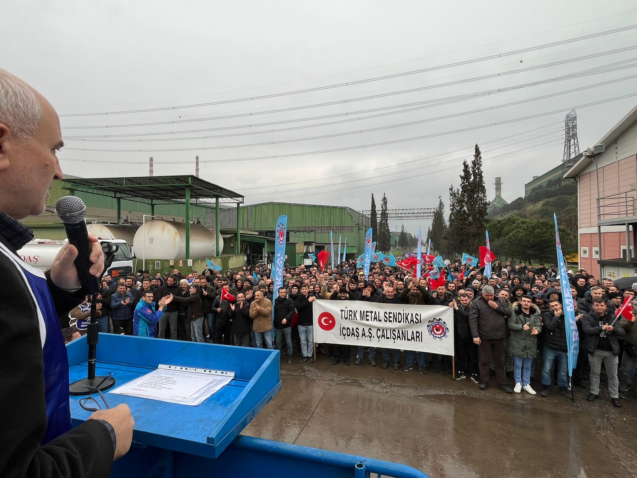 Değerli arkadaşlarım, sendikamız Türk Metal, ülke gerçeklerini, sanayimizin içinde bulunduğu koşulları üyelerimizin yaşam şartlarını, her şeyi ama her şeyi değerlendirerek üyelerimizin de katılımı ile aylarca çalışarak, taslağını vermiş, masaya da uzlaşmak için oturmuştu. Ancak muhatabımızdan aynı yaklaşımı göremedik. Bizim taslağımız, insanca yaşama talebimizdir. Alınterimizin karşılığını almak için Genel Başkanımız Sayın Uysal Altundağ’ın önderliğinde sonuna kadar direneceğiz. Sonunda kazanan biz olacağız.