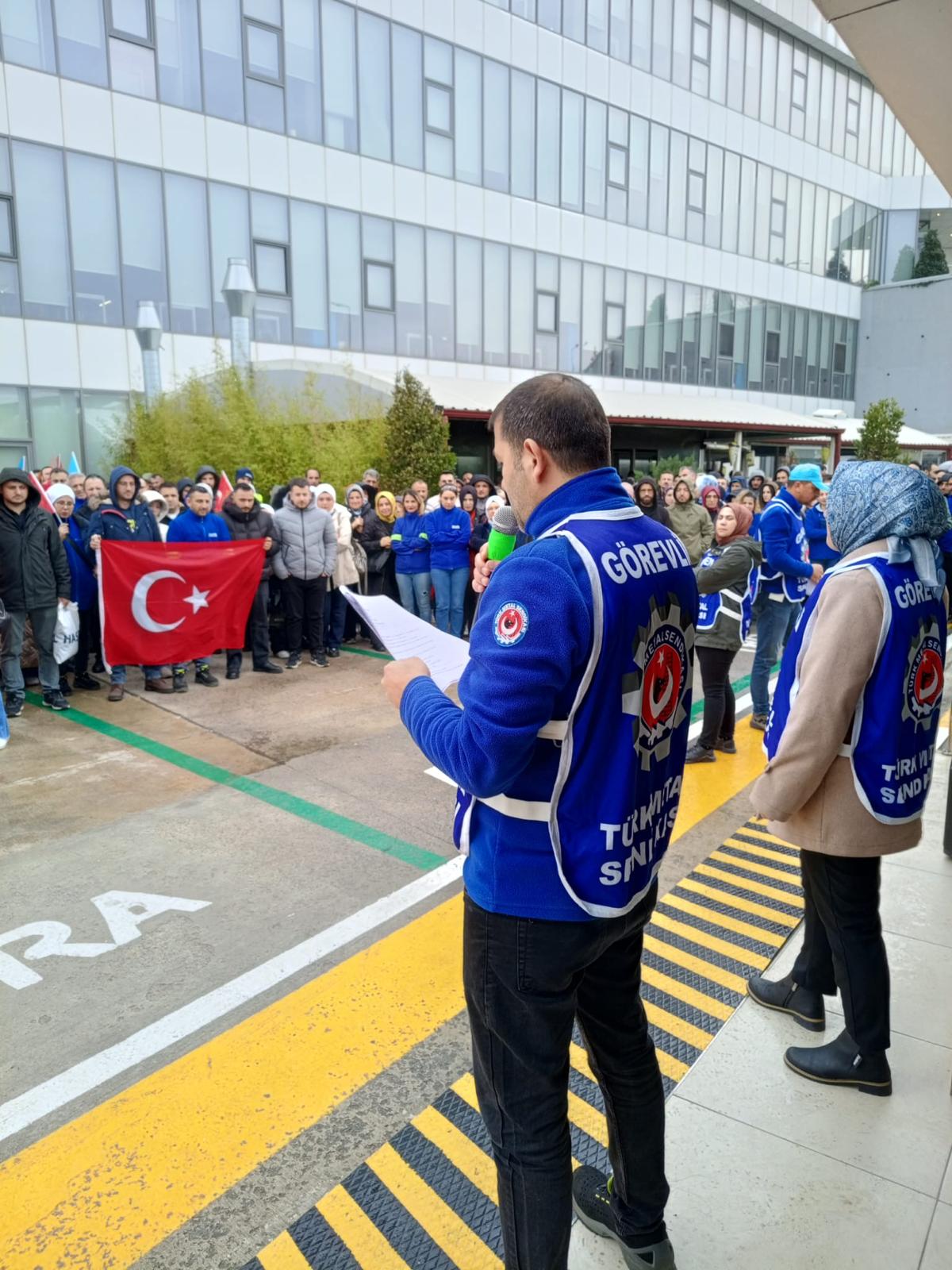 Şube Başkanlarımız ve İşyeri Sendika Temsilcilerimiz tarafından okunan ortak basın açıklamasına, üyelerimiz alkışlar ve sloganlarla destek vererek birlik ve dayanışma mesajı verdi.