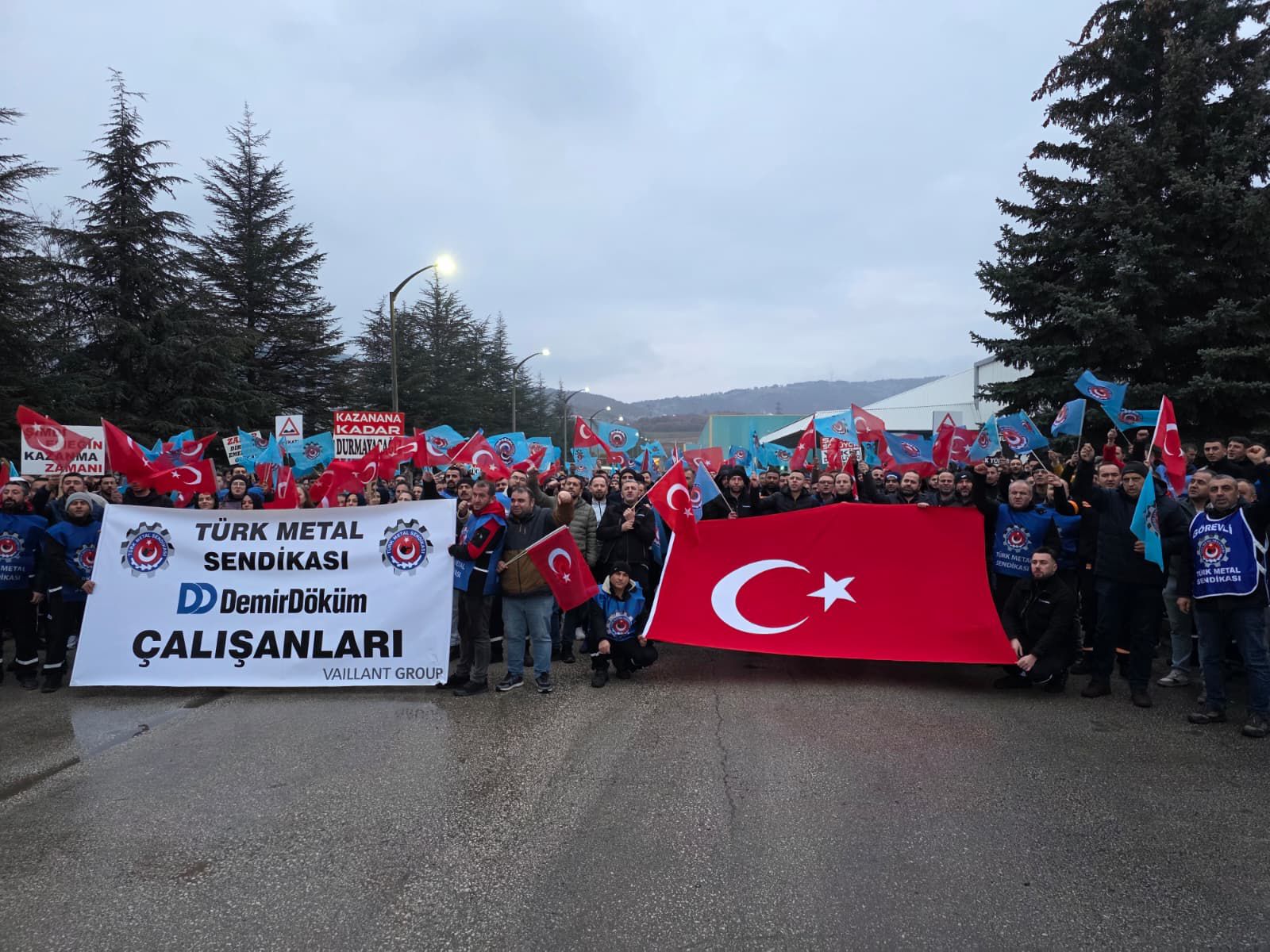 Türkiye Metal Sanayicileri Sendikası (MESS) ile sendikamız Türk Metal arasında yürütülen Toplu İş Sözleşmesi görüşmelerinde, 8 Aralık’taki uyuşmazlığın ardından başlattığımız eylem sürecine kararlılıkla devam ediyoruz.