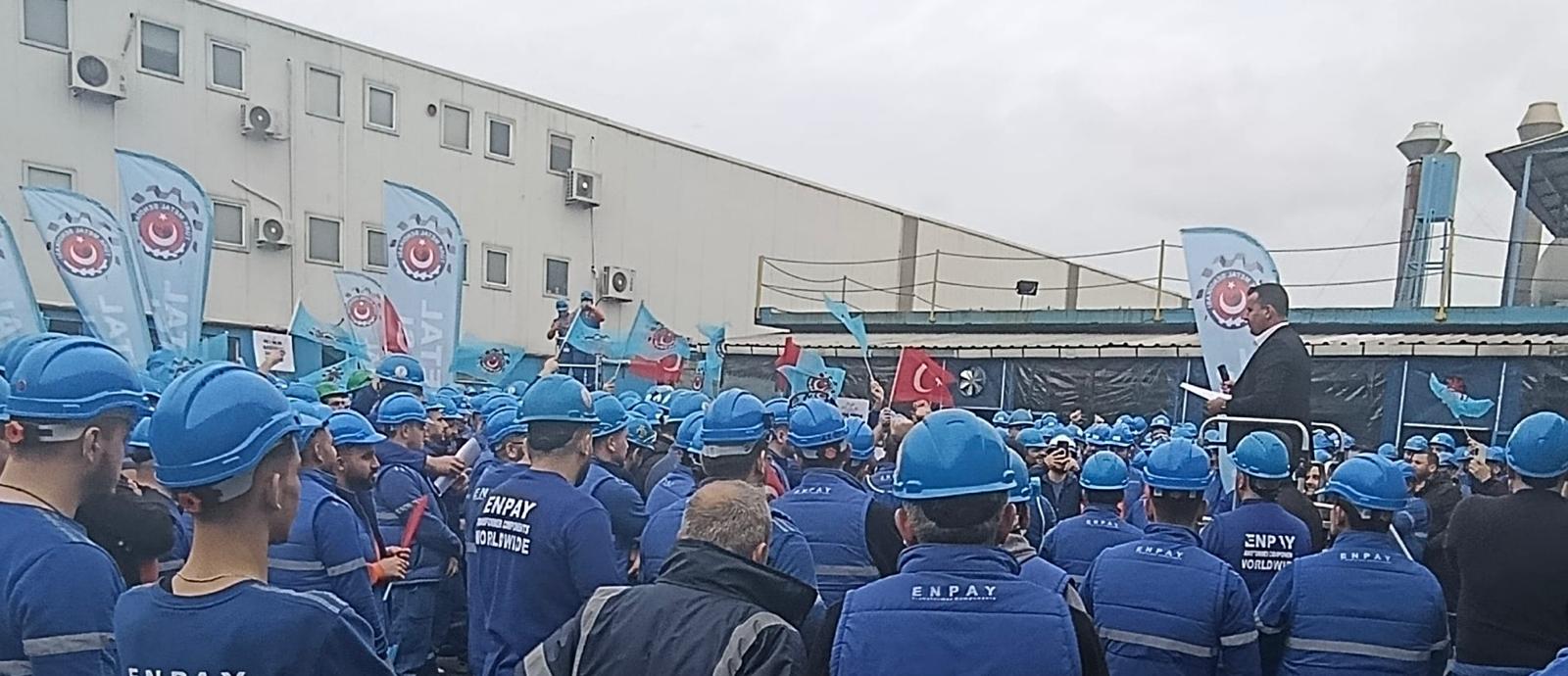 Değerli arkadaşlarım, sendikamız Türk Metal’in öncülüğünde bu sözleşmeden başarıyla çıkacağız. Bunun için yola çıktık. Zafer sendikasına inanan Türk Metalcilerin olacak. Birliğimizi, dirliğimizi, beraberliğimizi, sağlam tutmaktan başka bir güce ihtiyacımız yok. Biz bir ve beraber olursak bilin ki zafere ulaşırız. Biz eminiz, zafer bizim olacak. Zafer metal emekçisinin olacak.”