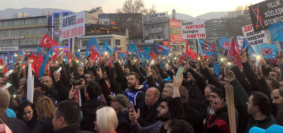 Türk Metal Sendikası ile Türkiye Metal Sanayicileri Sendikası (MESS) arasında 7 Ekim tarihinde başlayan müzakerelerde, taraflar arasında anlaşma sağlanamaması üzerine 4 Aralık tarihinde uyuşmazlık tutanağı tutularak, arabuluculuk aşamasına geçilmişti. Sendikamız Türk Metal, üyelerimizin haklı taleplerini hem işveren tarafına hem de kamuoyunu bir kez daha duyurmak adına 11 Aralık tarihinde MESS’e bağlı tüm işyerlerinde uyarı eylemlerine başlamıştı. Üyelerimizle birlikte MESS’e karşı ilk uyarı eylemini 11 Aralık tarihinde vardiya giriş ve çıkışlarında ıslık ve alkış sesleri eşliğinde gerçekleştirirken, 13 ve 17 Aralık tarihlerindeki eylemlerle de MESS’i protesto etmeye devam etmiştik.