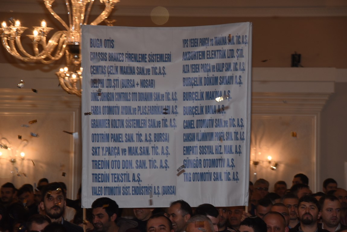 “2015’i ağzıma almak istemiyorum. O kara günleri hatırlamak da sizlere hatırlatmak da istemiyorum. Ama gelin, bir an için 2015’e yeniden dönelim. Türk Metal’i karıştırmak, bizi üyelerimizden koparmak isteyenler, sendikasız bir endüstri ilişkileri düzeni hayal edenler. O günlerde imzaladığımız BOSCH sözleşmesini bahane ettiler. Başta Bursa olmak üzere birçok işyerimizi karıştırdılar. Üyelerimizi sendikamızdan istifa ettirdiler. Çok şükür ki bütün arkadaşlarımız gerçeği gördü. Yuvalarına tekrar döndü. O gün 160 bindik. Bugün 200 binin üzerindeyiz. Bakın, biz o zaman ne demiştik? BOSCH sözleşmesi bir milat olacak. Çıtayı şimdilik buraya koyuyoruz. Bundan sonra imzalayacağımız her sözleşmede Bu çıtayı aşacağız. Buradan aşağı düşmeyeceğiz demiştik. Günlerce, aylarca bunu anlatmaya çalışmıştık. Peki, yaptık mı? Evet yaptık. BOSCH sözleşmesinde 4 ay önce imzaladığımız MESS sözleşmesinin üzerine 1 lira 20 kuruş, yani 360 lira artı değer aldık. Çıtayı oraya koyduk. Arkasından Erdemir sözleşmesi geldi. Çıtayı daha da yükselttik. BOSCH’u aşacağız dedik. Aştık mı? Evet aştık. Erdemir’de 2 lira 20 kuruş, yani 660 lira aldık. Peki sonra? Sonra Ficosa ve TI Otomotiv sözleşmeleri geldi. Dedik ki bizim tabanımıza, üyemize, Türk Metalcilere sözümüz var. Bu çıta burada durmaz. Türk Metal bu kalıba sığmaz dedik. Söz verdiğimiz kıdem zammını ilk kez bu işyerlerinde aldık. Ortalamada da 24.24 zam aldık. İki işyerimizde de bayram oldu. Çıtayı bu kez daha da yükseğe koyduk.