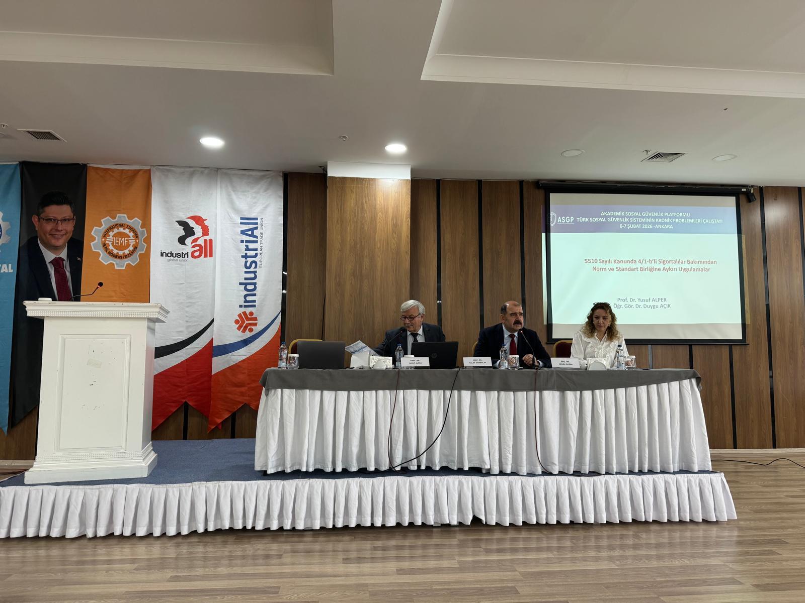 “Sosyal Güvenlik Sisteminin Kronik Problemleri” temalı çalıştayın 6 Şubat 2026 tarihinde düzenlenen açılış programına; sendikamızı temsilen Genel Sekreterimiz Taliphan Kıymaz, TAEM Başkanımız Ergin Dinç ile Akademik ve Sosyal Güvenlik Platformu Başkanı Prof. Dr. Ali Nazım Sözer’in yanı sıra, 33 üniversiteden 45 akademisyen; Çalışma ve Sosyal Güvenlik Bakanlığı, Sosyal Güvenlik Kurumu, Yargıtay, Yüksek Seçim Kurulu, Türkiye Emekliler Derneği ve farklı kurumlardan temsilciler ile sendikamız uzmanları katıldı.