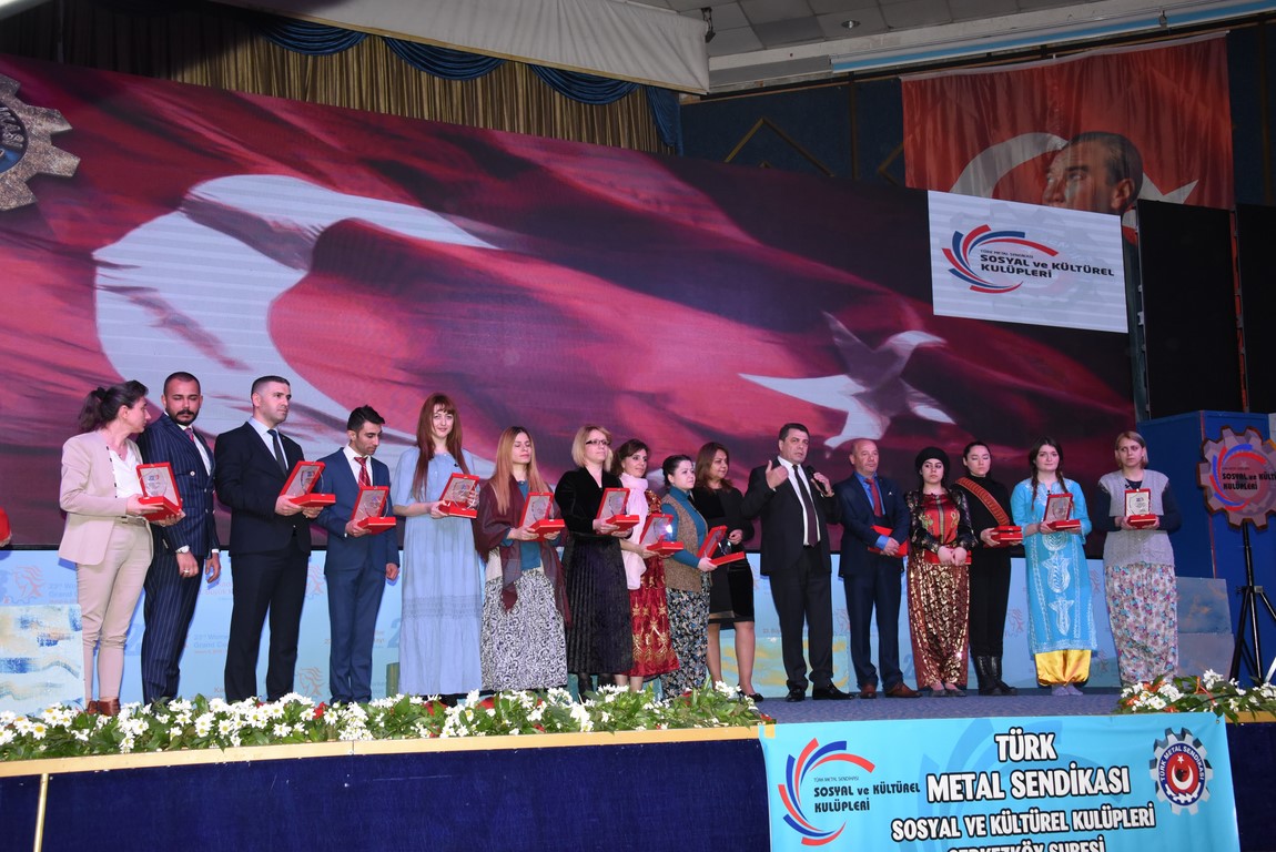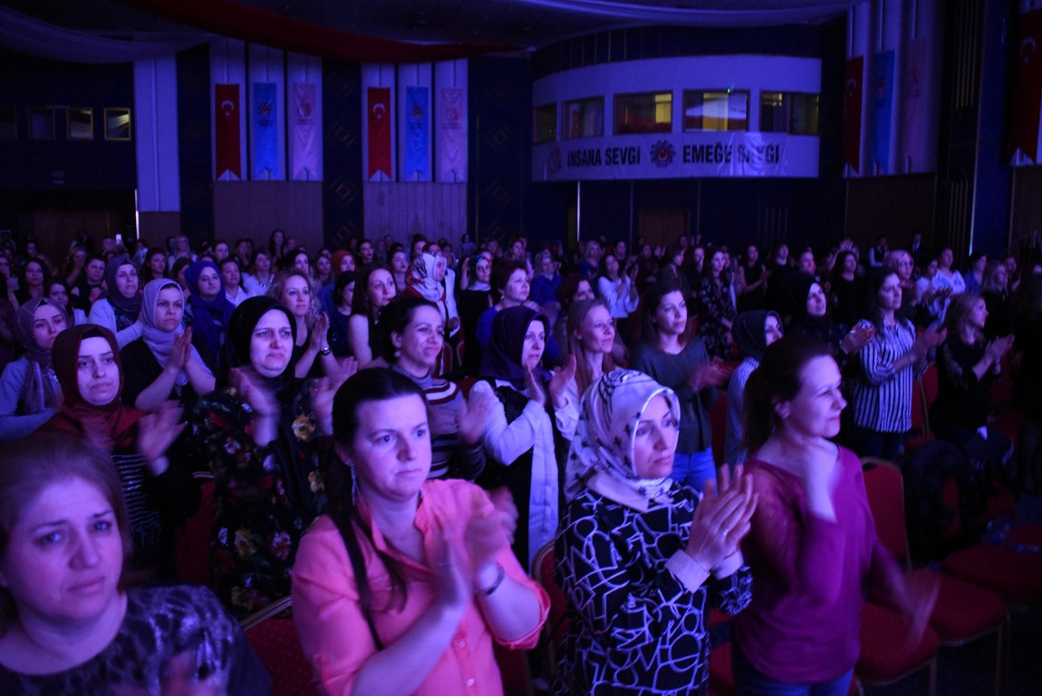 Tarihe damga vurmuş Türk kadınlarının hayatından kesitler veren oyuna, Kadın İşçiler 23. Büyük Kurultayı delegeleri yoğun ilgi gösterdi. Genel Başkanımız Pevrul Kavlak da “Kahraman Türk Kadınlarımız” tiyatro oyunu izleyerek Sosyal ve Kültürel Kulüp üyelerimize destek verdi. Genel Başkanımız Kavlak, oyununda rol alan üyelerimize gösteris sonrasında birer de plaket takdim etti.
