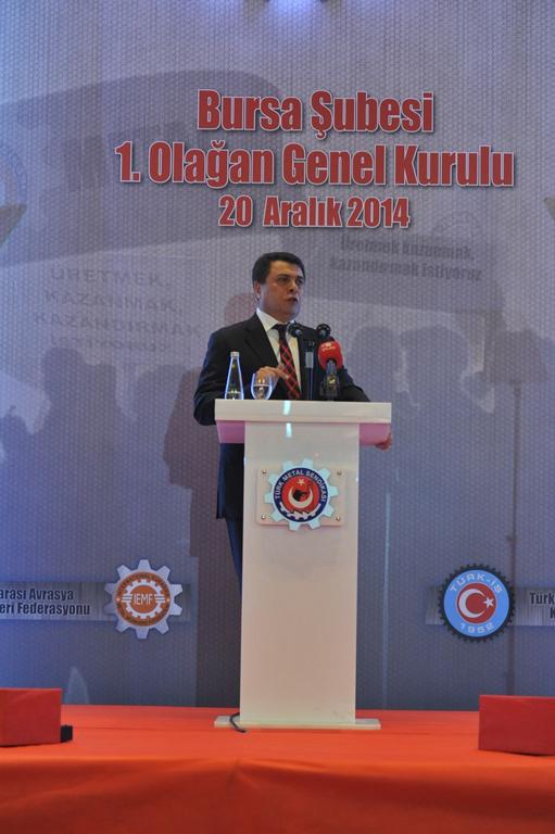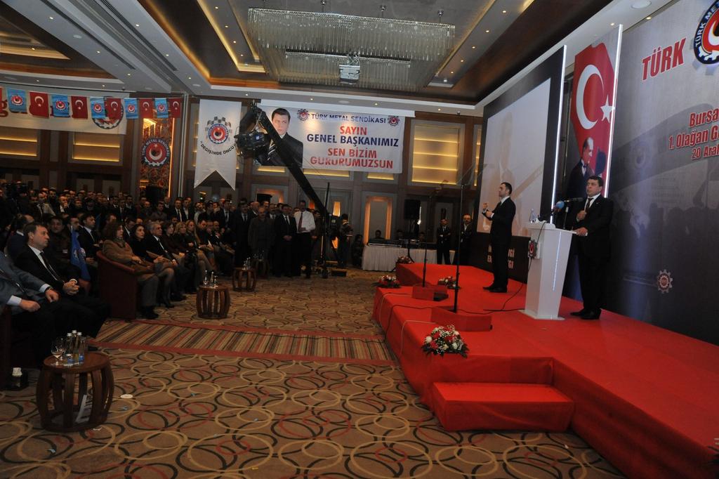 Genel Başkanımız Pevrul Kavlak Bursa Şubemizin 1. Olağan Genel Kurulu’na katıldı. Divan Başkanı olarak burada yaptığı konuşmasında Türk Metal’in tarihine, bir ücret zammı daha altın harflerle yazılmıştır dedikten sonra sözleşmenin 3 yıllık olmasına ilişkin de “bu sözleşmeyi 2017 yılına kadar, yani 3 yıllık imzaladık. Sözleşmenin 2. yılı sona erdiğinde, yani, beşinci 6 aylık dilimde, enflasyon artı % 3,5 oranında ekstra bir zam daha aldık. Bu sözünü ettiğim % 3,5'luk refah payı, şimdiden kazanım hanemize yazıldı” dedi. Kavlak; “Masada bir damla alın terinizi, bir lokma ekmeğinizi bırakmadık. Neyi hak ettiyseniz hakkınızı son kuruşuna kadar aldık. Hepinize helal olsun. Başlangıçta, enflasyon otomatiğine bağlanmış, üç yıllık bir sözleşmeye karşıydık. Ama karşılığı verilmiş bir 3 yıl için de imza atarız dedik. Karşılığını verdiler, biz de imzaladık” dedi, Kavlak ayrıca “Biz bu sözleşmeyle, daha 3 yılda, bakın altını çiziyorum daha 3 yılda% 11'lik refah payını yakaladık. Yani üç yıl, iki yıldan fazla getirdiği için kabul ettik” diyerek 3 yıl gerekçelerini ifade etti. Bundan sonraki süreçte sosyal sendikacılık faaliyetlerinin yoğunlaşacağını şu sözlerle ifade etti:
