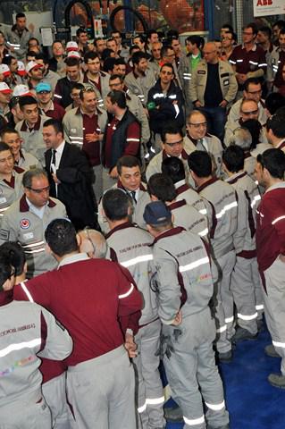 Daha sonra da tek tek tezgâhları dolaşan Kavlak; Grammer emekçileri ile tokalaştı ve onlarla beraber oldu.