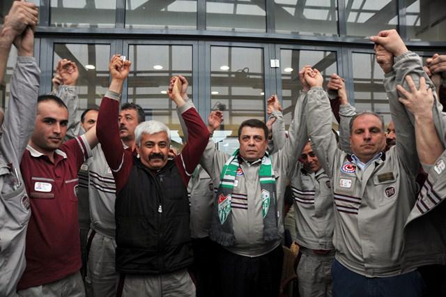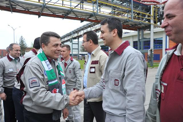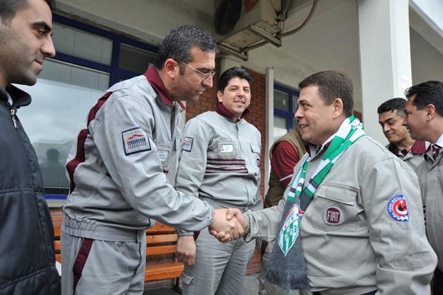 Tofaş emekçileri Kavlak’la el sıkışırken “Başkan İlerle, İşçiler Seninle” “Tofaş seninle gurur duyuyor” İşte Başkan, İşte Tofaş” sloganları atıldı. Elini sıkan metal işçileri… Başkanım yanınızdayız, desteğimiz sizinle, diyerek sözleşme sürecinde tek vücut olduklarının işaretini verdiler.