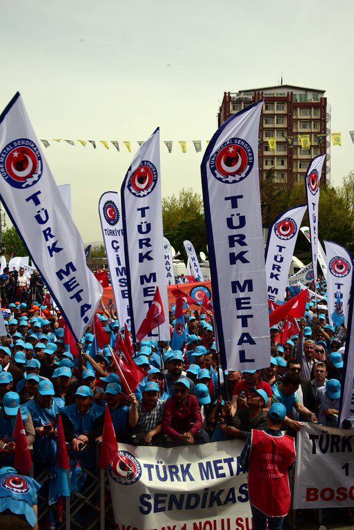 Ankara’da 1 Mayıs kutlamaları, TÜRK-İŞ’e bağlı sendikaların üyelerinin, Hipodrom Caddesi’nde toplanması ile başladı. Hipodrum Caddesi’nde toplanan on binlerce emekçinin katıldığı kortej, sloganlar eşliğinde Tandoğan Meydanında bulunan miting alanına ulaştı. TÜRK-İŞ Genel Sekreteri ve sendikamız Genel Başkanı Pevrul Kavlak, Hipodrum caddesinden miting alanına kadar kortejin önünde yer aldı.