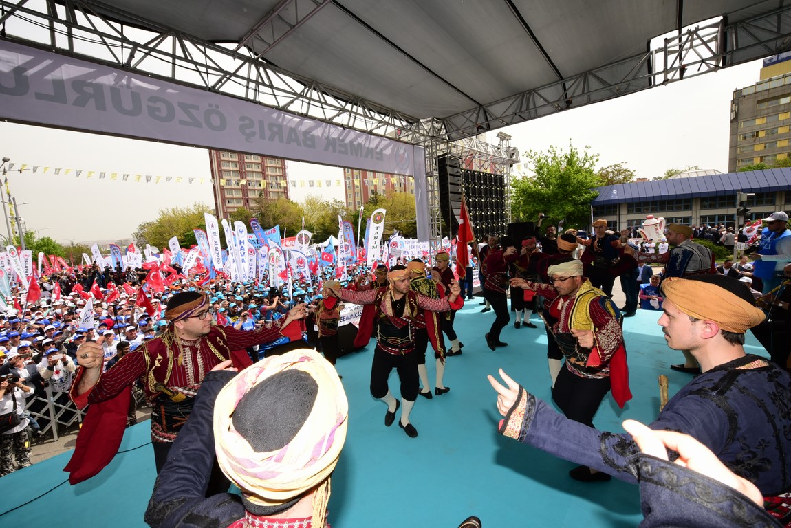 TÜRK-İŞ Teşkilatlandırma Sekreteri Eyüp Alemdar’ın kısa konuşması ile başlayan 1 Mayıs kutlamalarına, 1 dakikalık saygı duruşu ve ardından hep bir ağızdan okunan İstiklal Marşı ile devam edildi. İstiklal marşının ardından Ankara Seğmenler Kulübü Derneği Ankara Oyun Havalarından derlediği gösteriyi sundu.